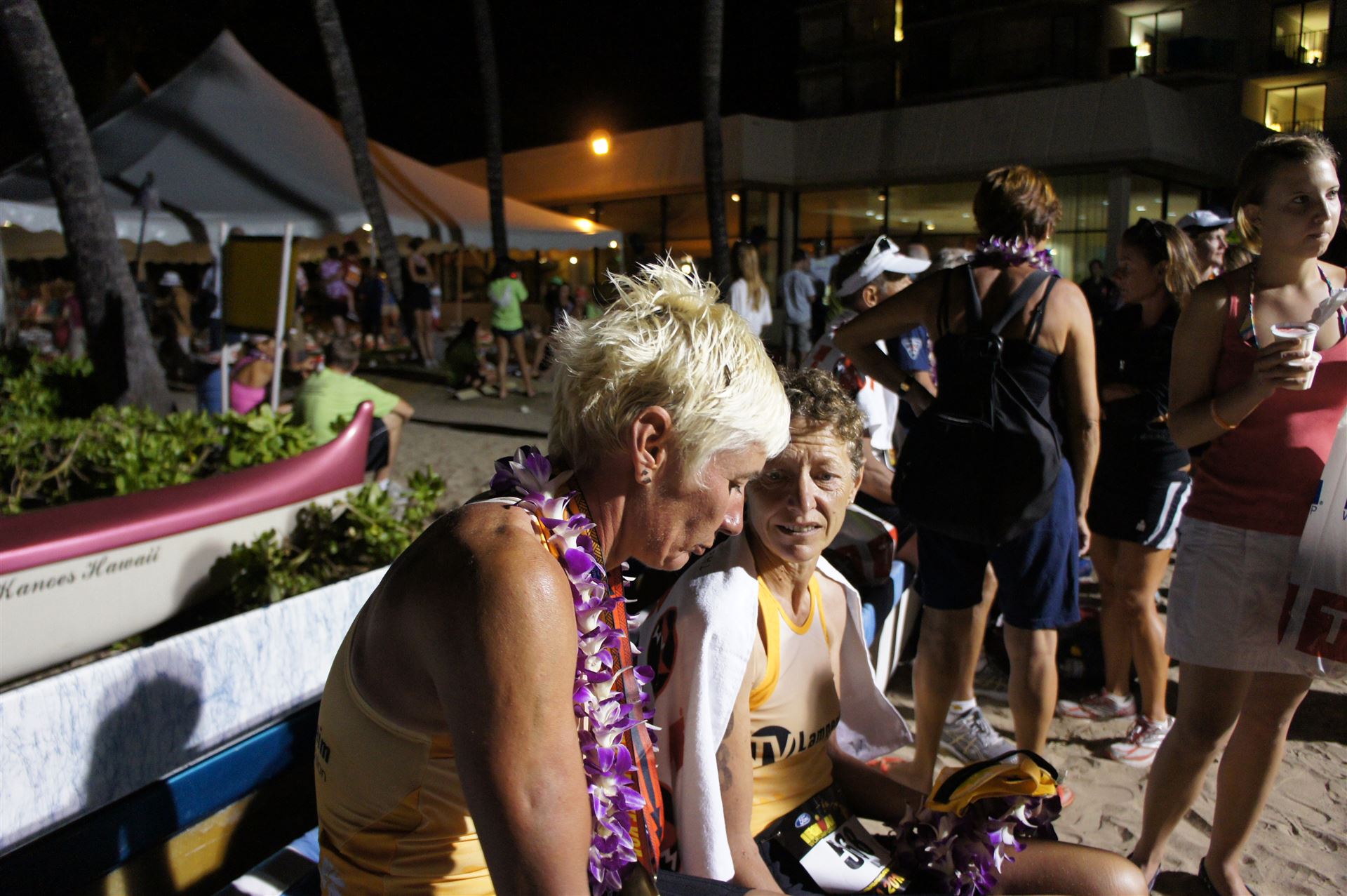 Die Leute auf Hawaii im Wechselbereich, in der Verpflegung einfach überall sind dermaßen freundlich und hilfsbereit. Es ist schon erstaunlich, wie man hier als Athlet behandelt wird. Auch im Zielbereich bekommt man von jedem Helfer und sonstigen Leuten gratuliert. Das kenne ich in Deutschland nicht. Man hört ständig „congratulations“. Man fühlt sich saugut dabei. Zuhause angekommen gibt es eine warme Dusche und die Welt ist wieder in Ordnung. Wenn meine Füße nicht so sehr wehtun würden, wäre mir gar nicht bewusst, dass ich gerade einen Ironman hinter mir habe.