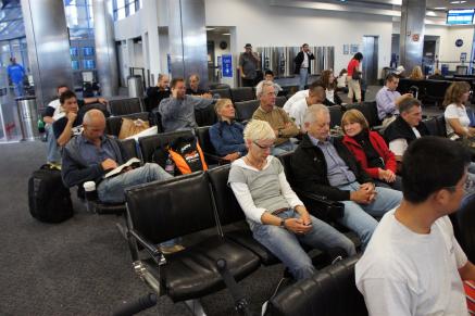 Nachmittag behalten. Ich denke, heute reist noch einmal eine große Anzahl von Leuten ab. Wir bringen unseren Mietwagen zurück und checken am Flughafen ein. Wir hoffen, dass unsere Koffer nicht gewogen werden, die sind eindeutig zu schwer. Glück gehabt unsere großen Koffer wollte keiner wiegen. Hannes verabschiedet sich auch von allen Leuten.