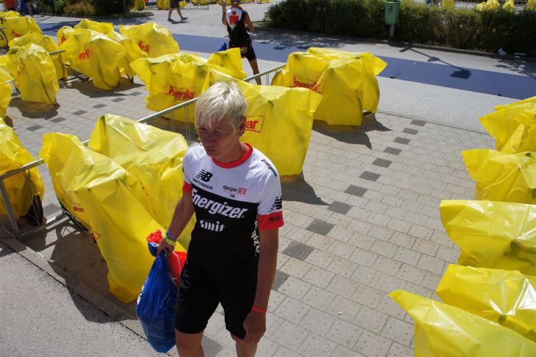 Kurzer Zwischenstopp in der Wechselzone und los geht es zur letzten Disziplin. Jetzt liegt nur noch der Marathon von 42 km vor mir.