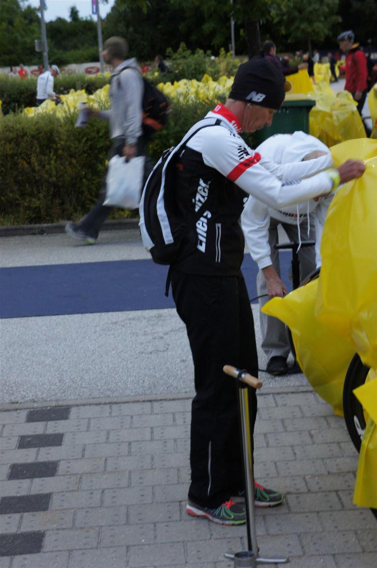 Die Wechselzeit zählt mit, daher kurz die Radbeleidung an und ab aufs Rad.