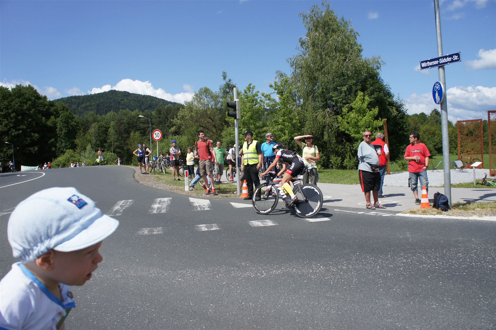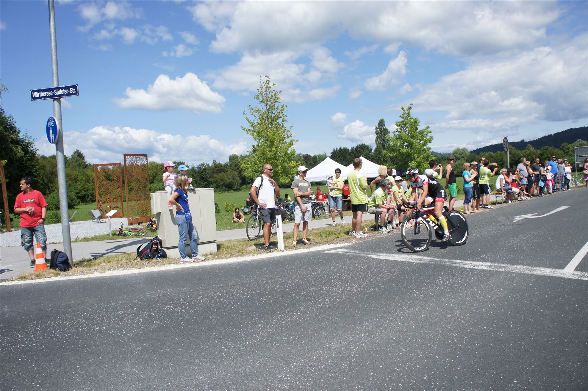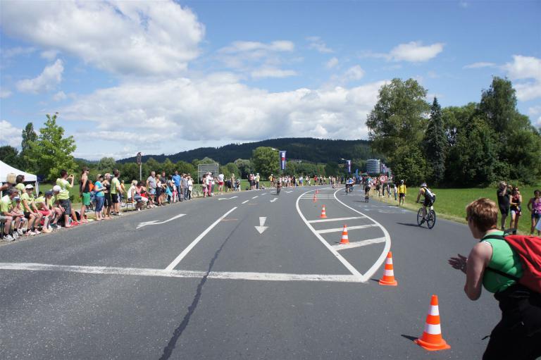 Der erste Anstieg am Faaker See ist immer wieder eine tolle Erfahrung. Bei einer Steigung von bis zu 10 % muss man schon kräftig in die Pedale treten. Die Zuschauer stehen Spalier, da darf man keine Schwäche zeigen. Der zweite und bekannteste Anstieg, der Ruperti Berg ist mit einer Länge von 2.400 Metern und einer maximalen Steigung von 14 % für jeden Triathleten eine Herausforderung.