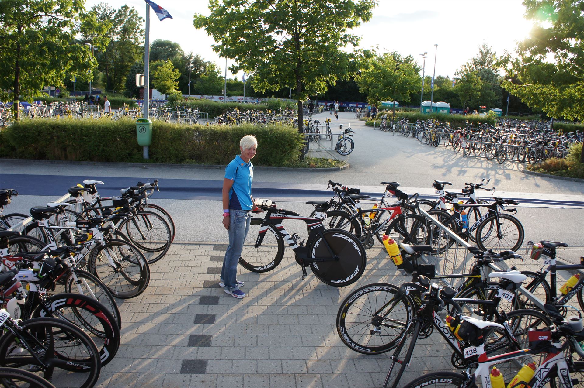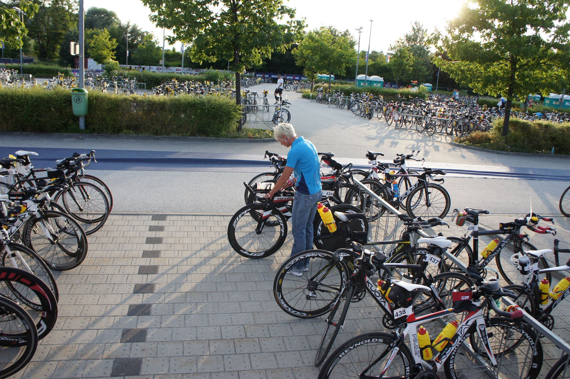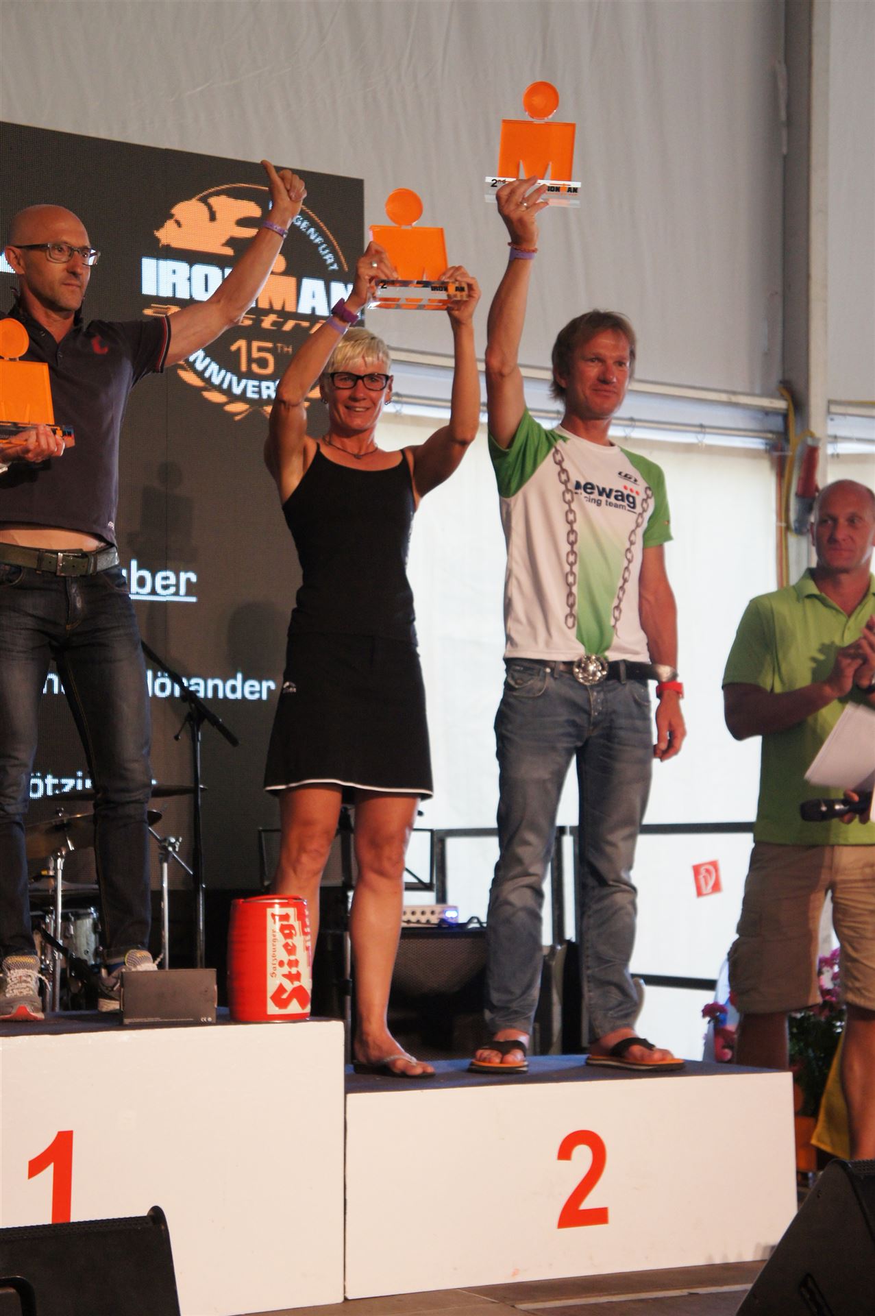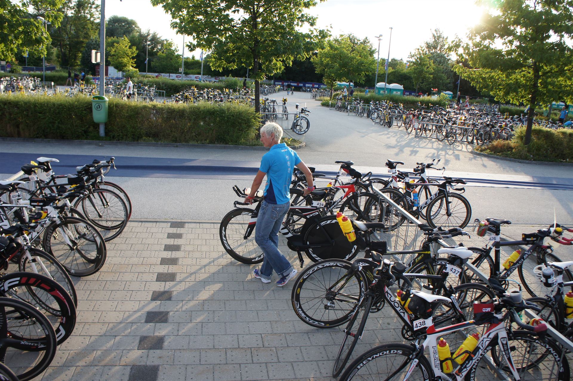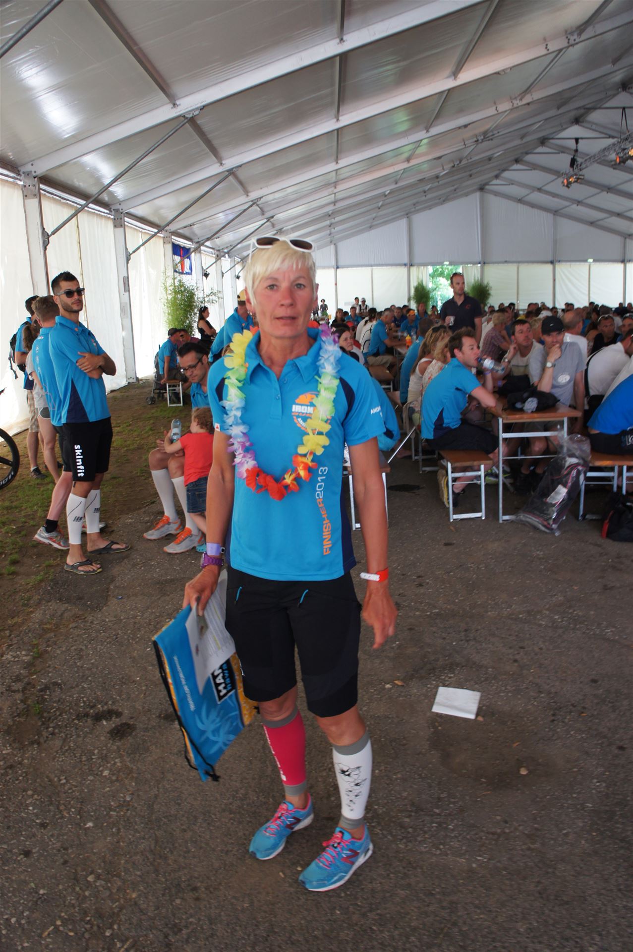 Ich bin geduscht, etwas essen kann ich an diesem Tag nichts mehr. Mein Rad sowie meine übrige Kleidung habe ich bereits aus der Wechselzone geholt. Es geht wieder zurück an die Finisherline. Die Stimmung ist gigantisch. Jeder einzelne Athlet wird von den Moderatoren und vom Publikum begrüßt. Der Zieleinlauf ist bis 00:00 Uhr geöffnet, danach gibt es noch ein Feuerwerk.