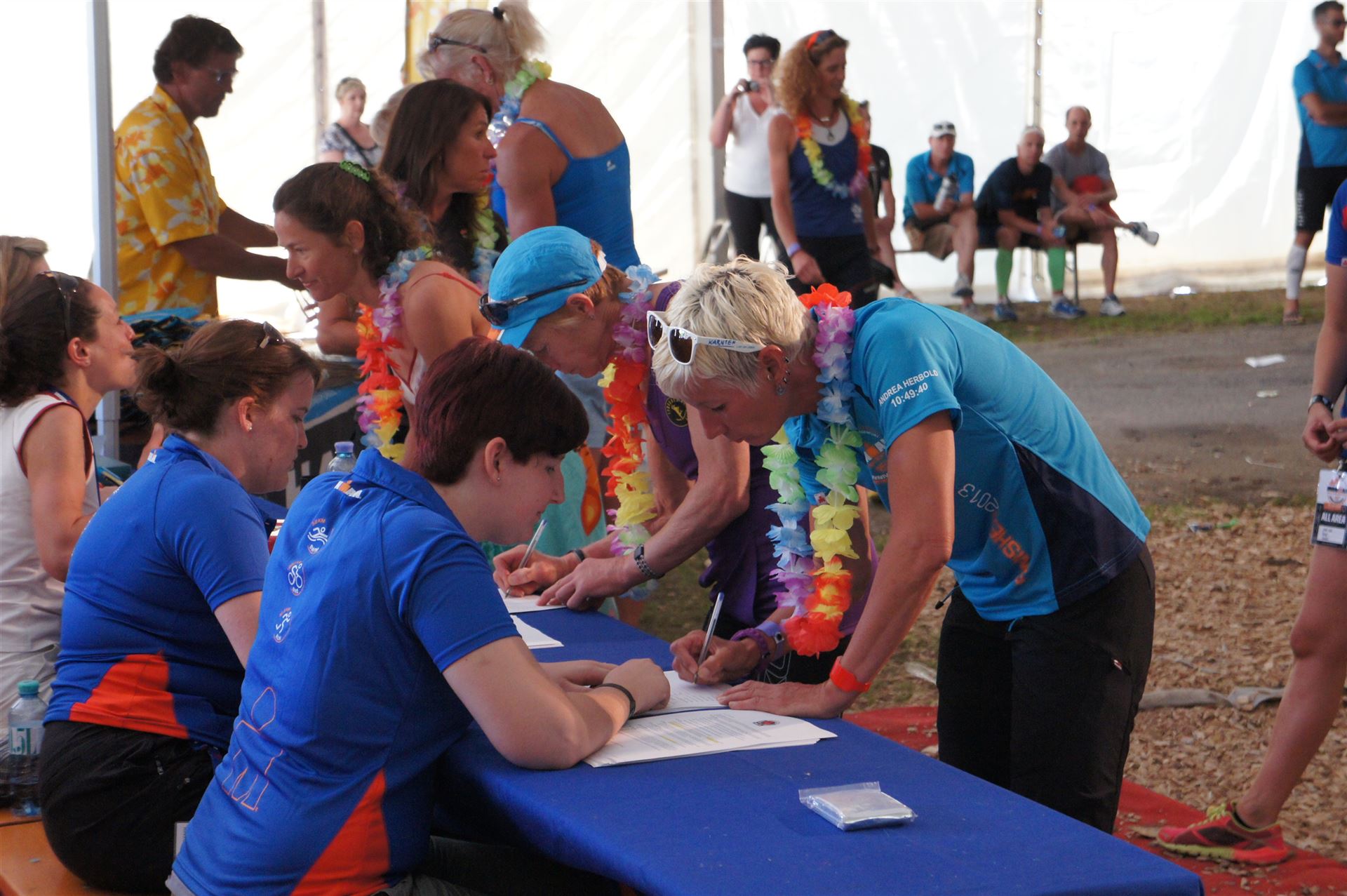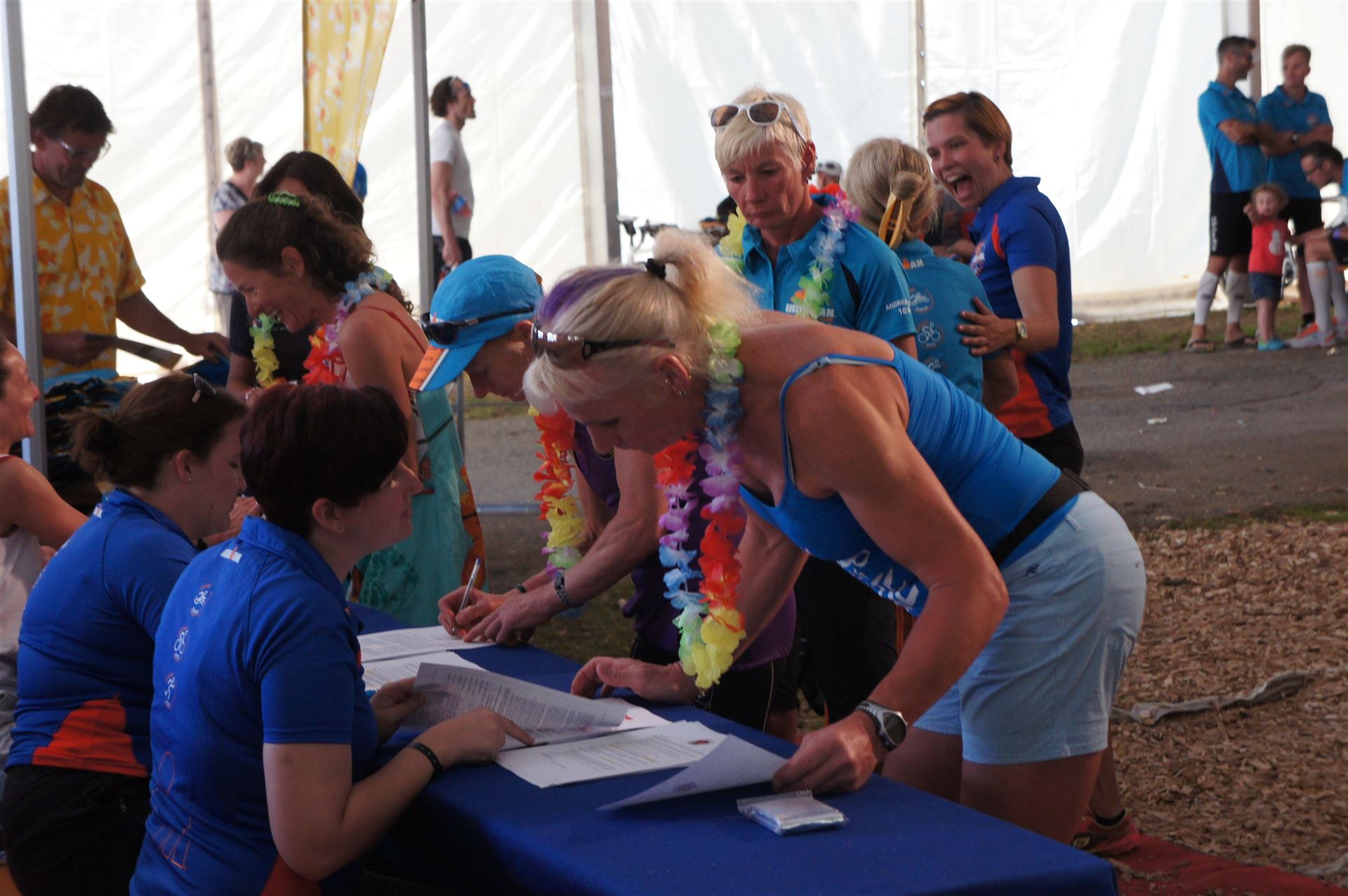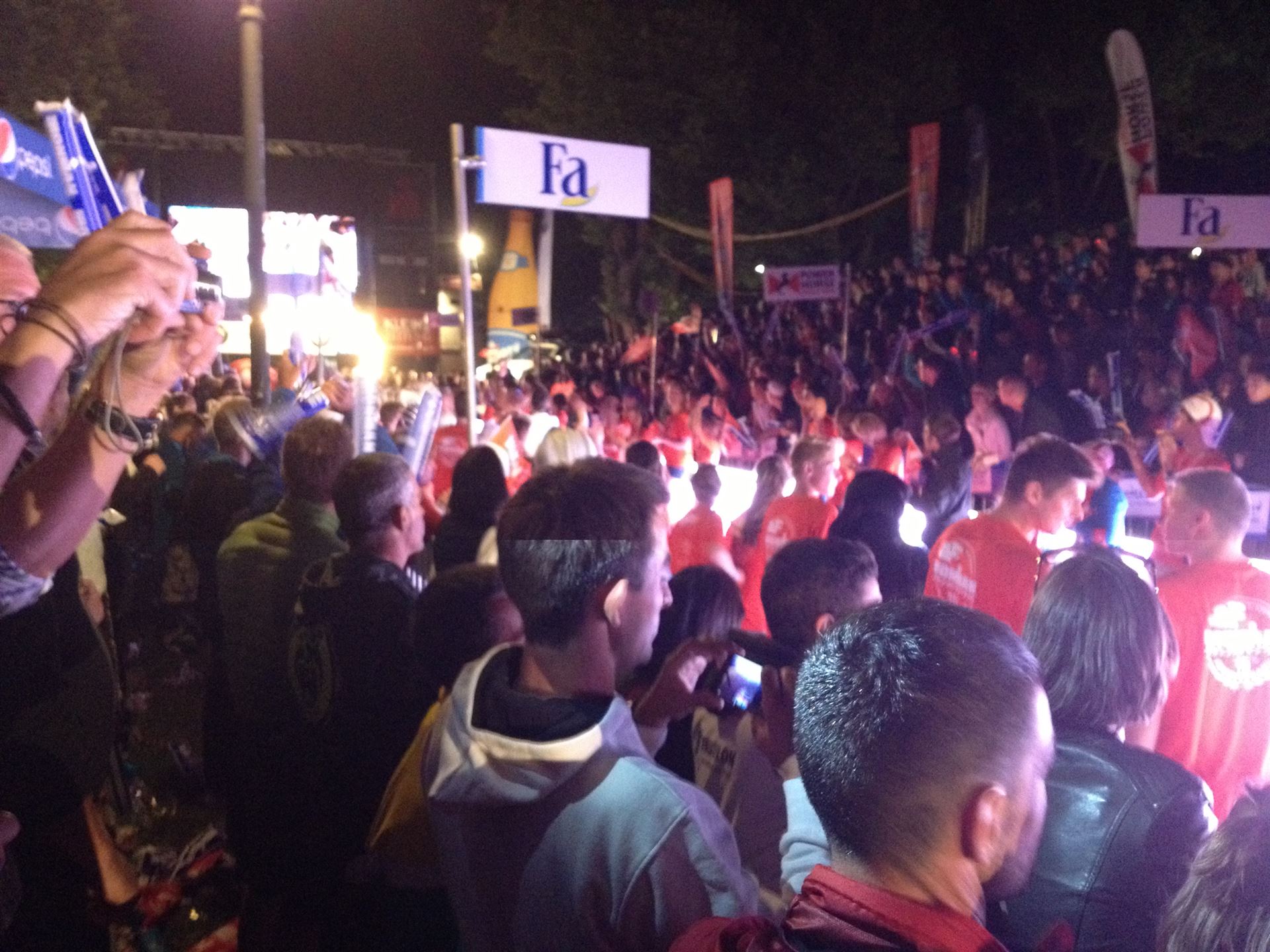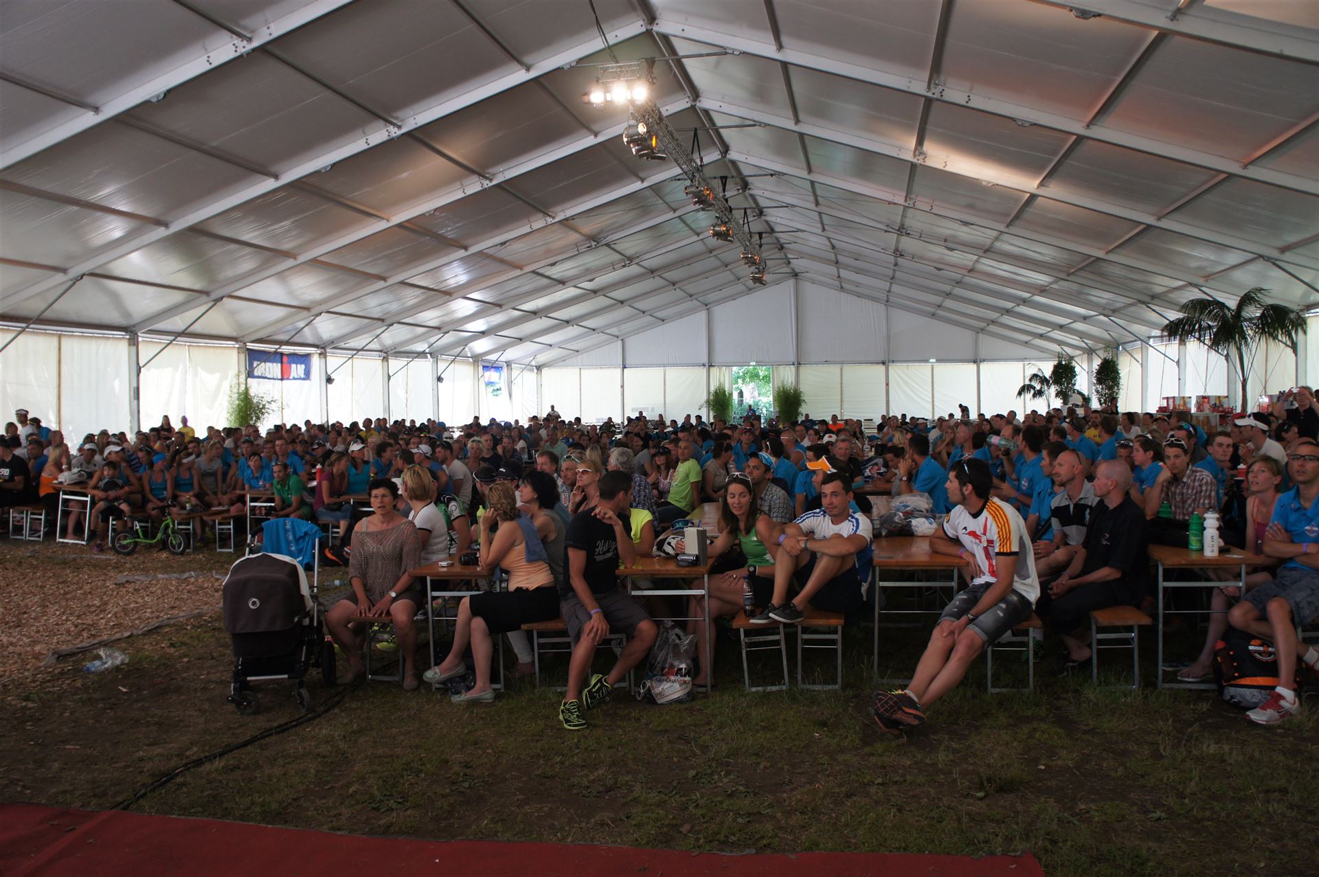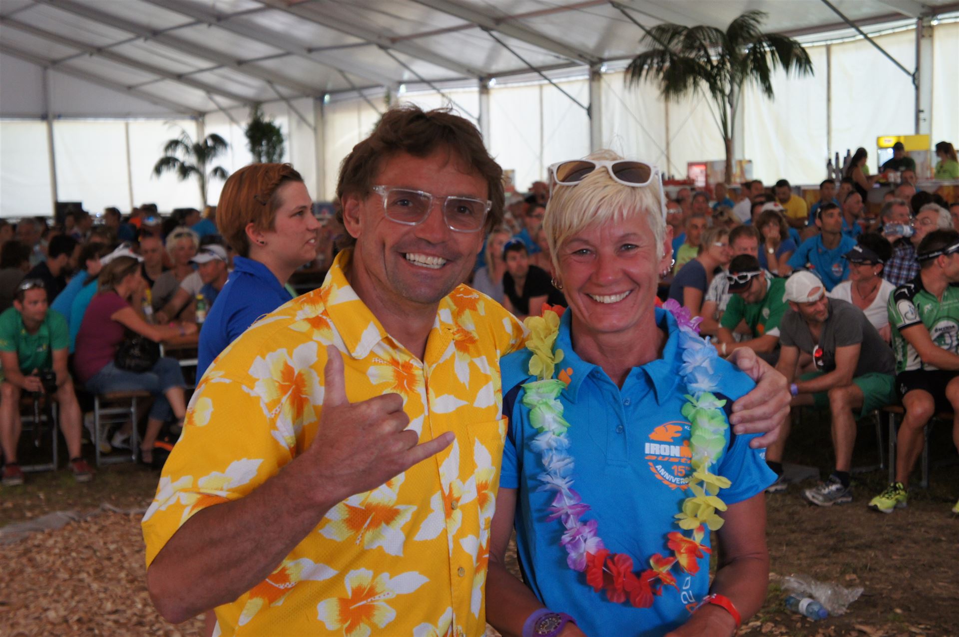 Ich bin geduscht, etwas essen kann ich an diesem Tag nichts mehr. Mein Rad sowie meine übrige Kleidung habe ich bereits aus der Wechselzone geholt. Es geht wieder zurück an die Finisherline. Die Stimmung ist gigantisch. Jeder einzelne Athlet wird von den Moderatoren und vom Publikum begrüßt. Der Zieleinlauf ist bis 00:00 Uhr geöffnet, danach gibt es noch ein Feuerwerk.