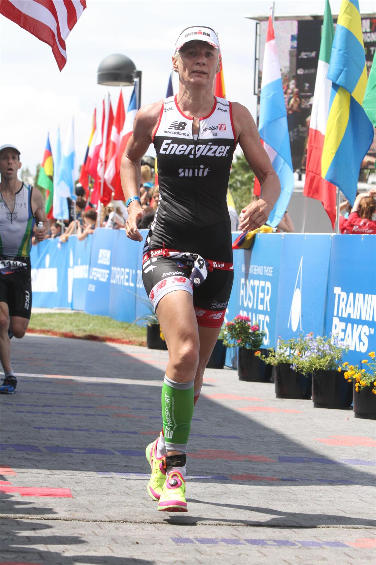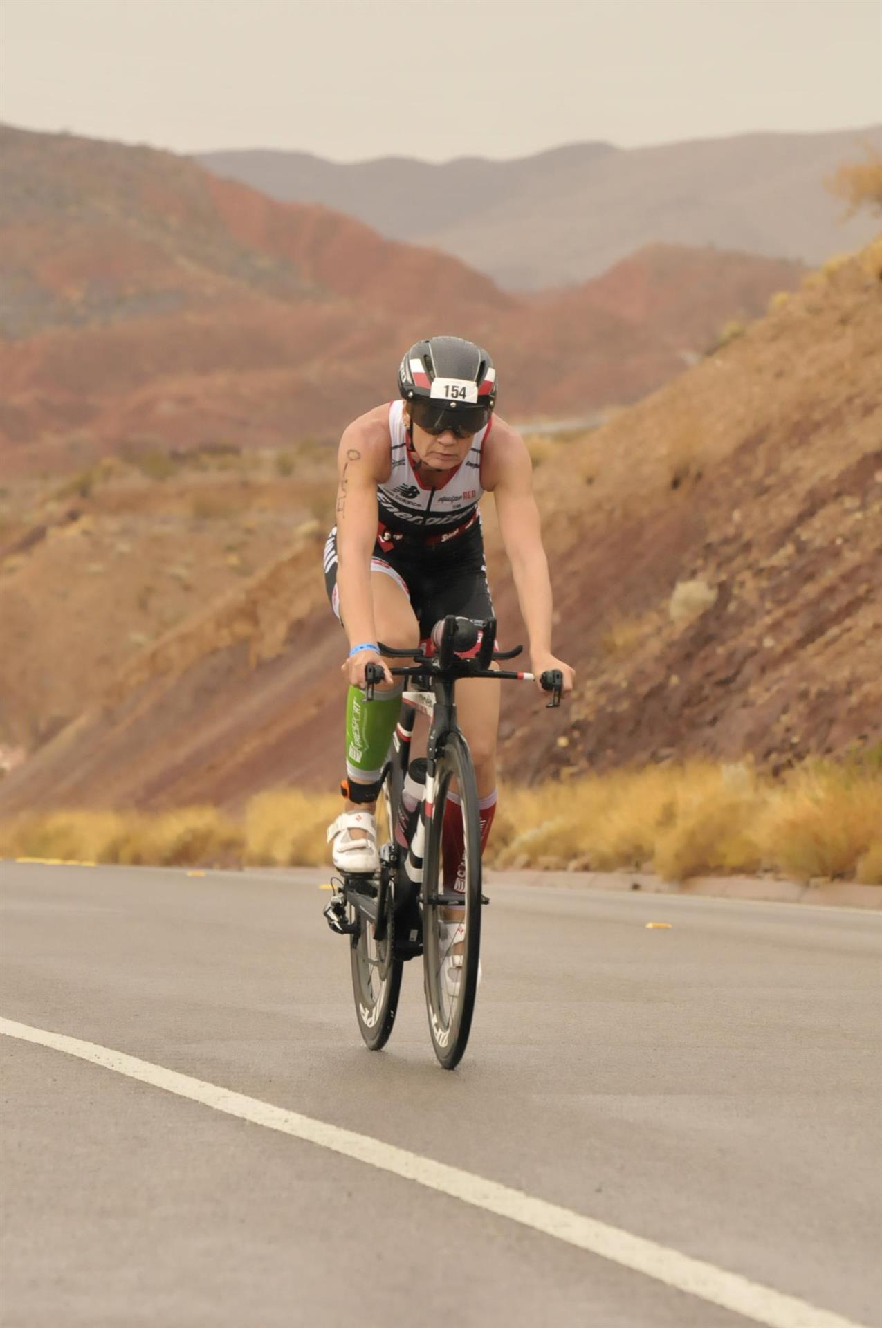 Heute Morgen gab es noch einmal eine kleine Radausfahrt. Da ich nicht mehr so viel machen wollte bin ich alleine gefahren. Um 6:30 Uhr ging es los, 30 Minuten in Richtung Wüste und wieder zurück. Erstaunlich wieviele Leute bereits um diese Zeit unterwegs sind. Die Temperaturen sind noch sehr angenehm. Nach der Radausfahrt gibt es wieder ein gemütliches Frühstück und um 10:00 Uhr fahren wir mit dem Bus zum Henderson Park. Hier ist die zweite Wechselzone eingerichtet und der Zieleinlauf ist ebenfalls dort. Das Einchecken geht relativ flott, die Leute sind super freundlich. Nach dem Einchecken machen wir noch einen Rundgang über die Messe. Es sind alle bekannten Marken vertreten, jeder zeigt seine neusten Waren.