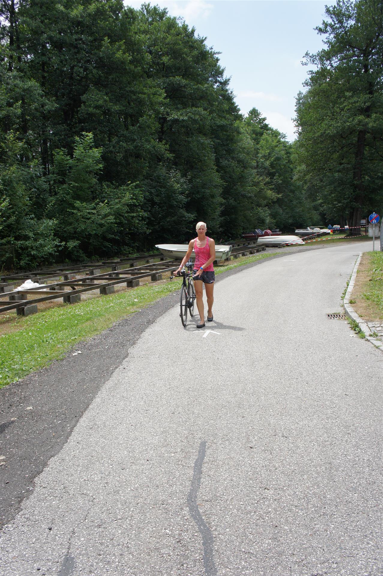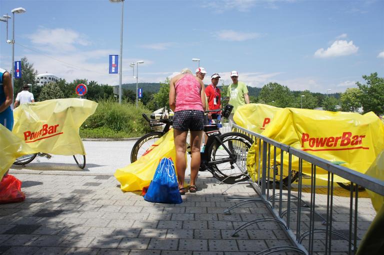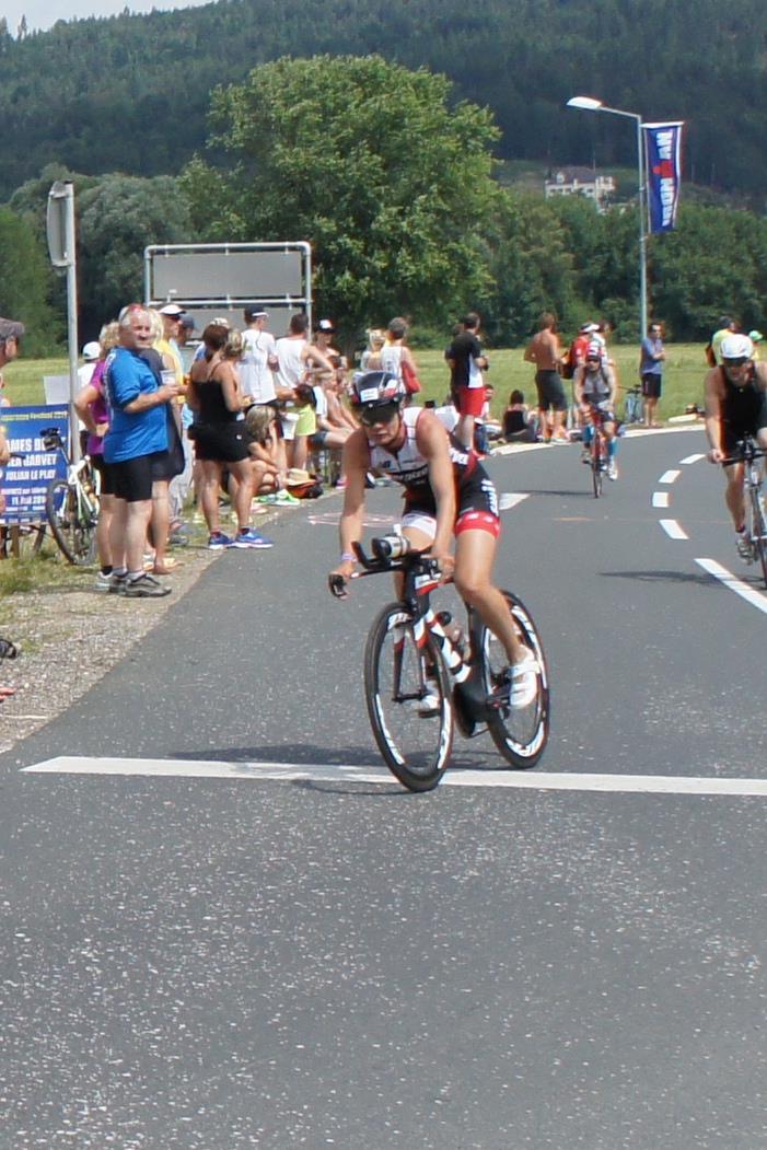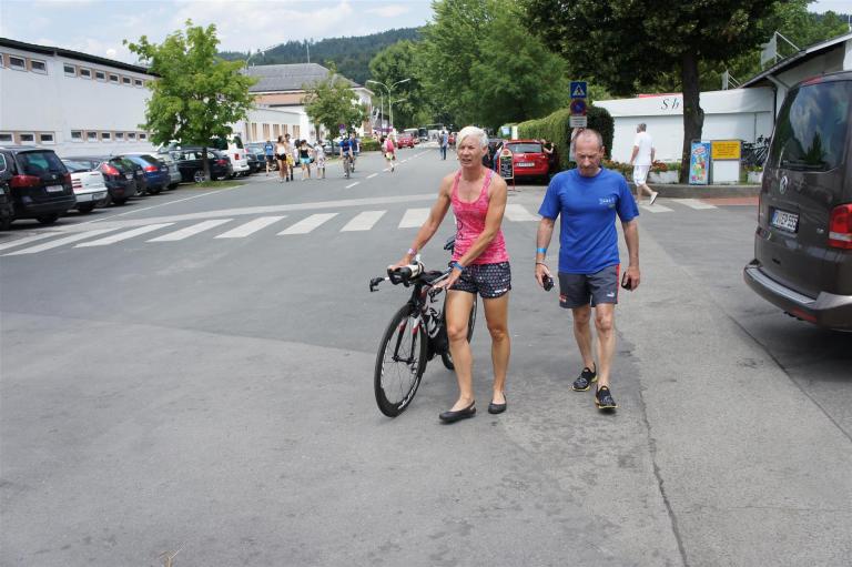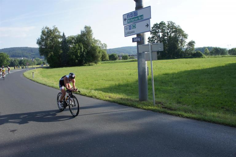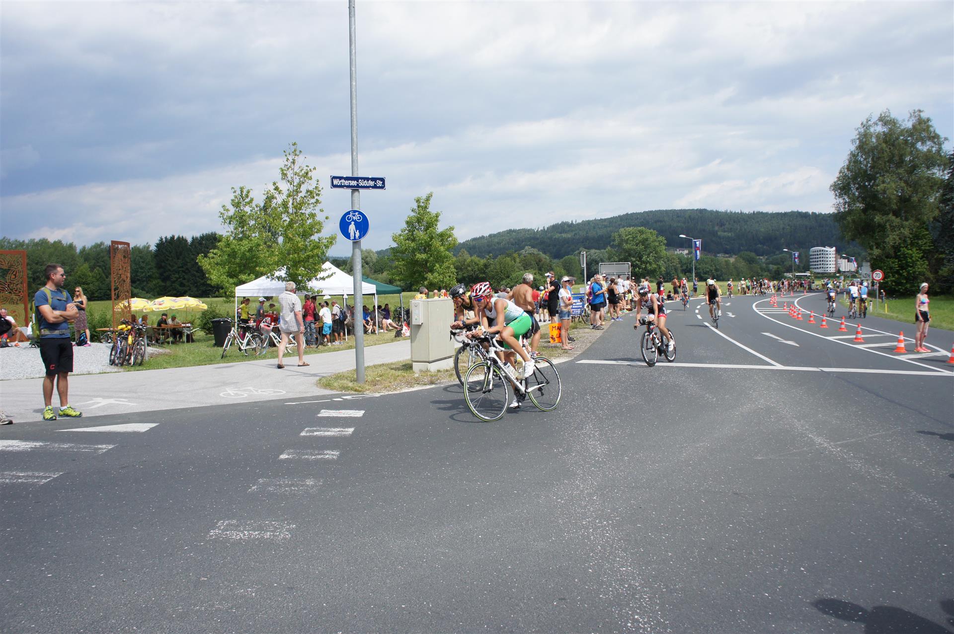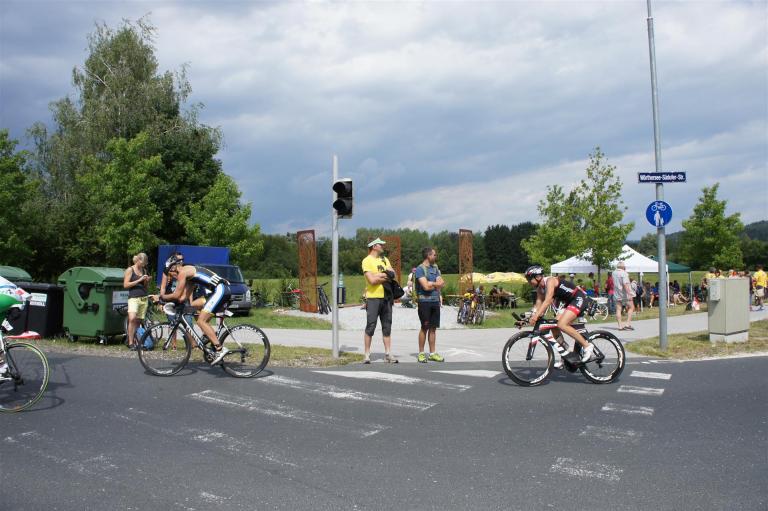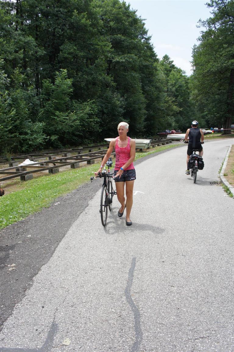 In der Wechselzone schnell die Radutensilien anziehen und ab aufs Rad. Es geht erst einmal Richtung Station bevor man dann am Wörthersee entlang fährt. Die ersten Kilometer ist die Radstrecke noch relativ voll. Das Feld muss sich langsam auseinander ziehen.