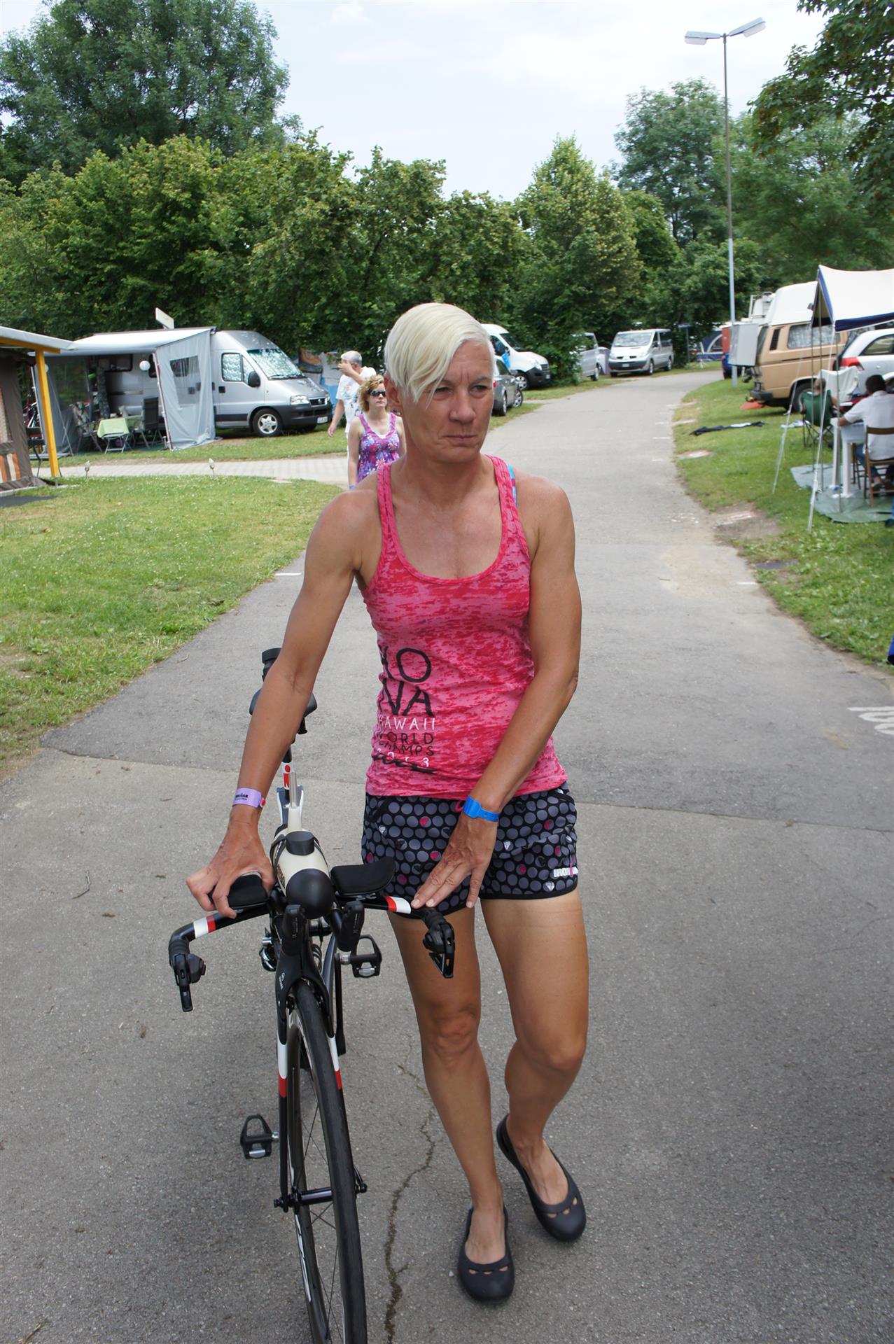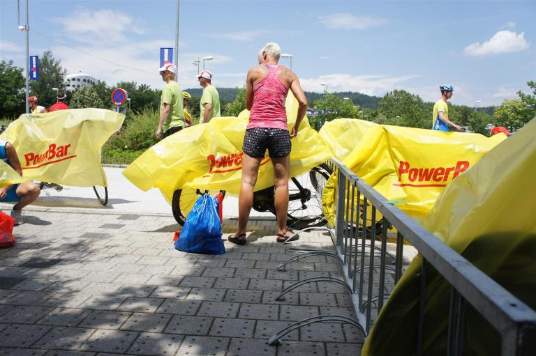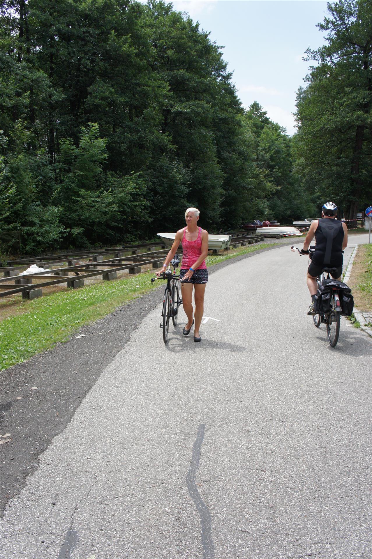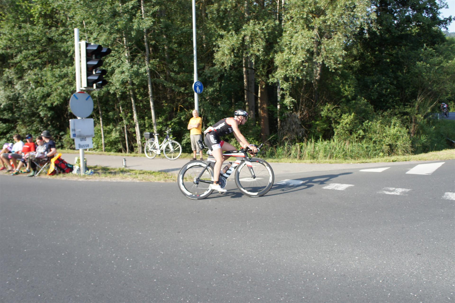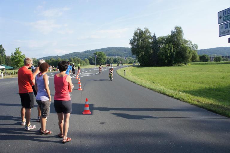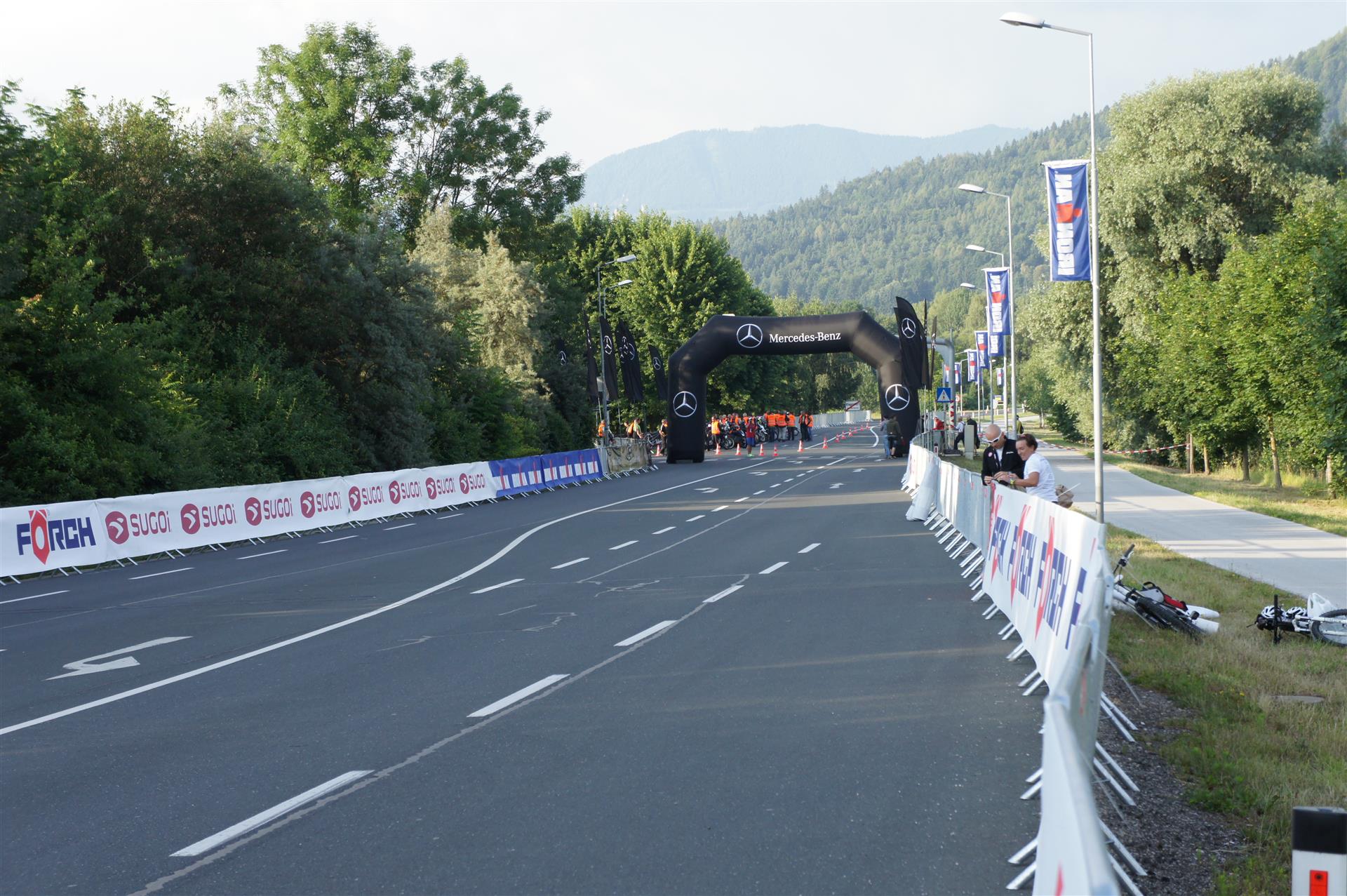 In der Wechselzone schnell die Radutensilien anziehen und ab aufs Rad. Es geht erst einmal Richtung Station bevor man dann am Wörthersee entlang fährt. Die ersten Kilometer ist die Radstrecke noch relativ voll. Das Feld muss sich langsam auseinander ziehen.