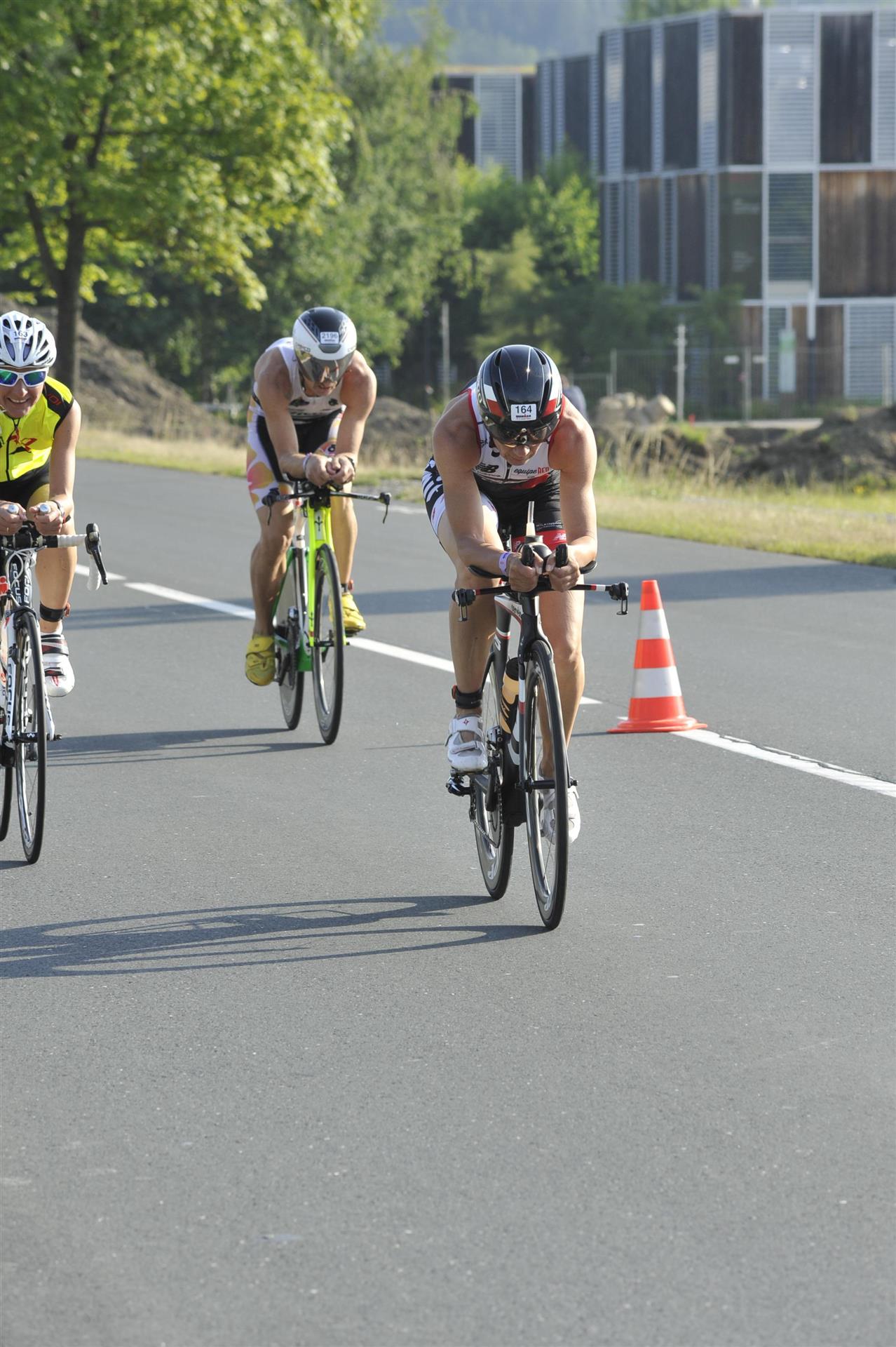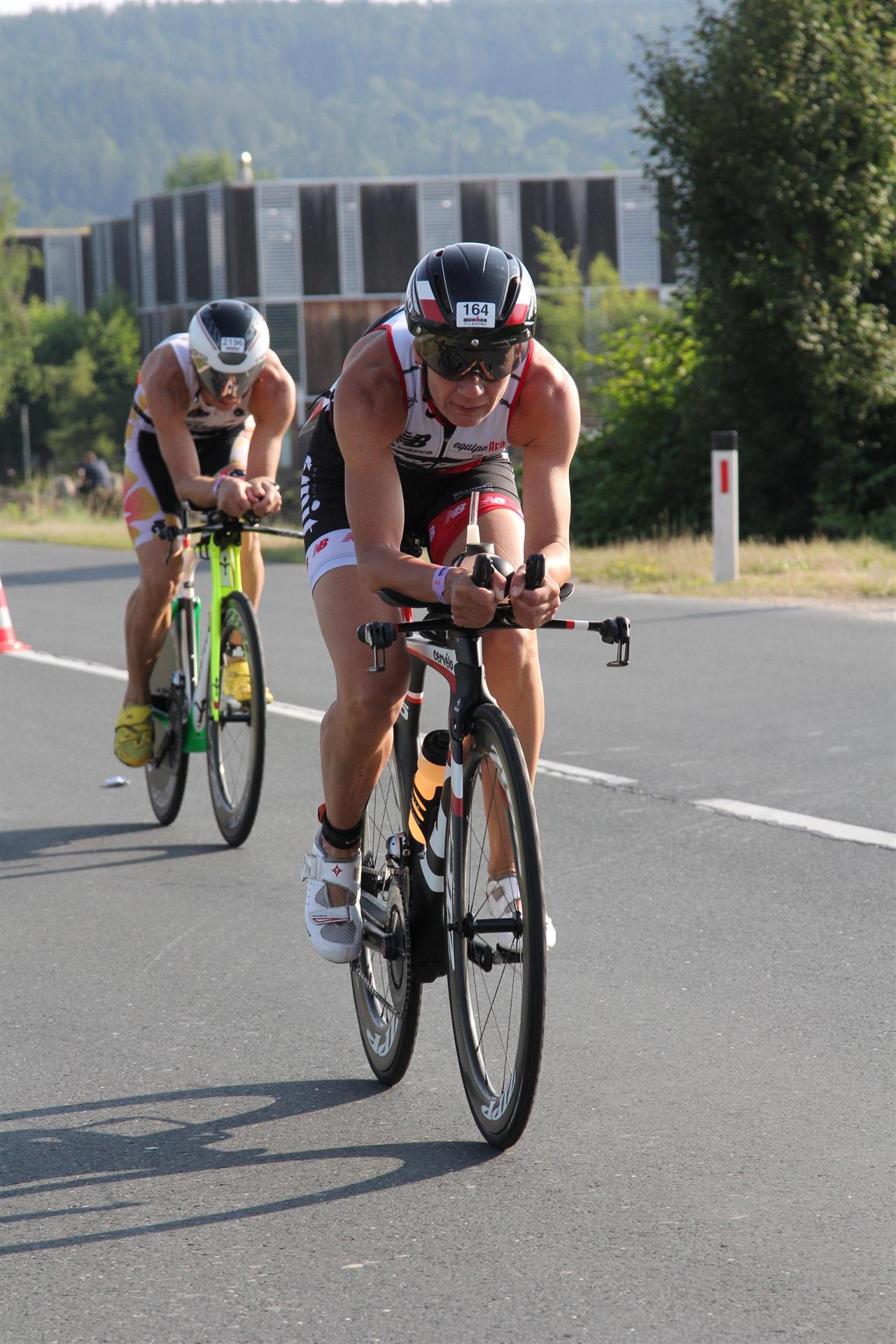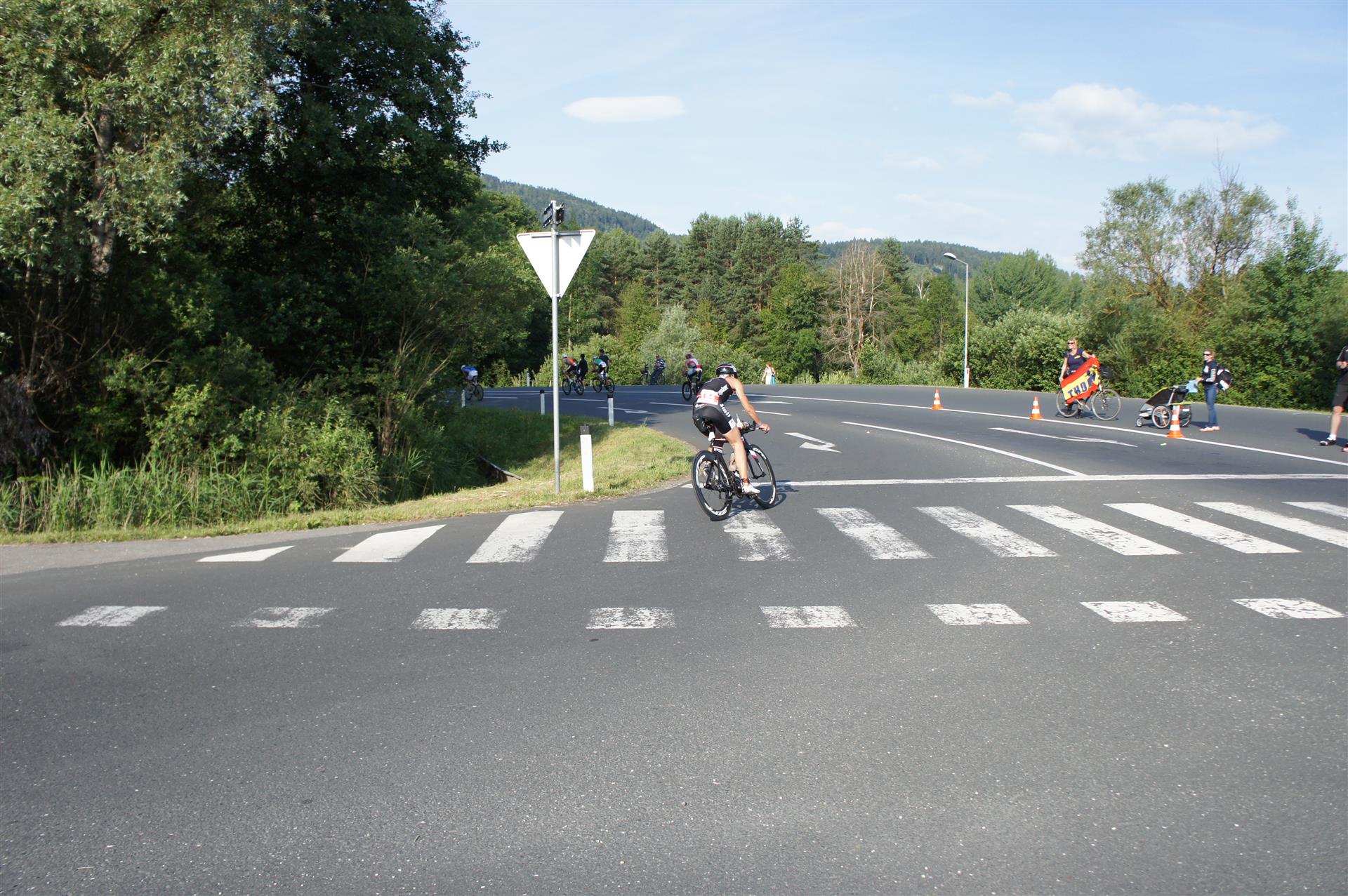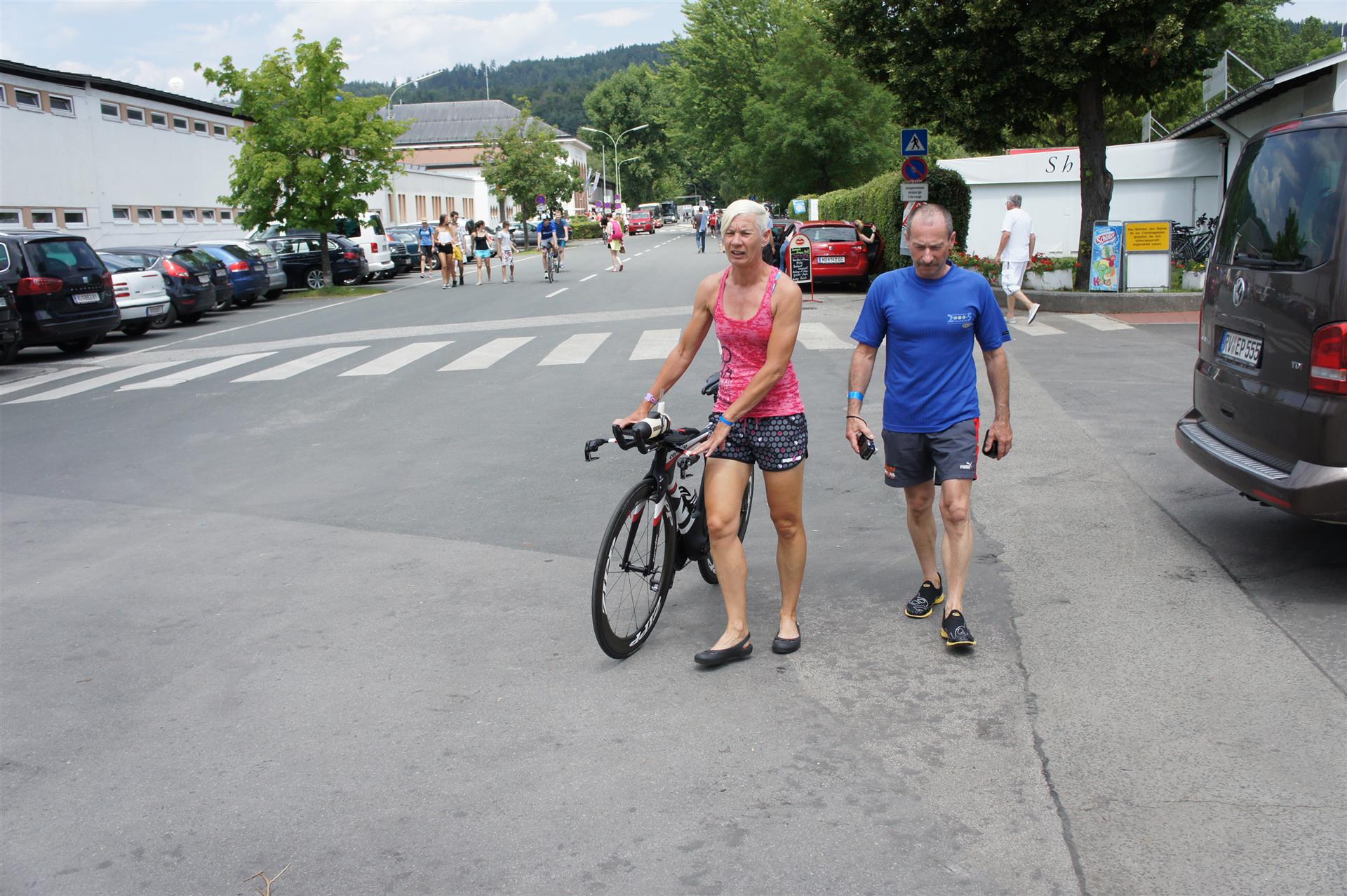 In der Wechselzone schnell die Radutensilien anziehen und ab aufs Rad. Es geht erst einmal Richtung Station bevor man dann am Wörthersee entlang fährt. Die ersten Kilometer ist die Radstrecke noch relativ voll. Das Feld muss sich langsam auseinander ziehen.