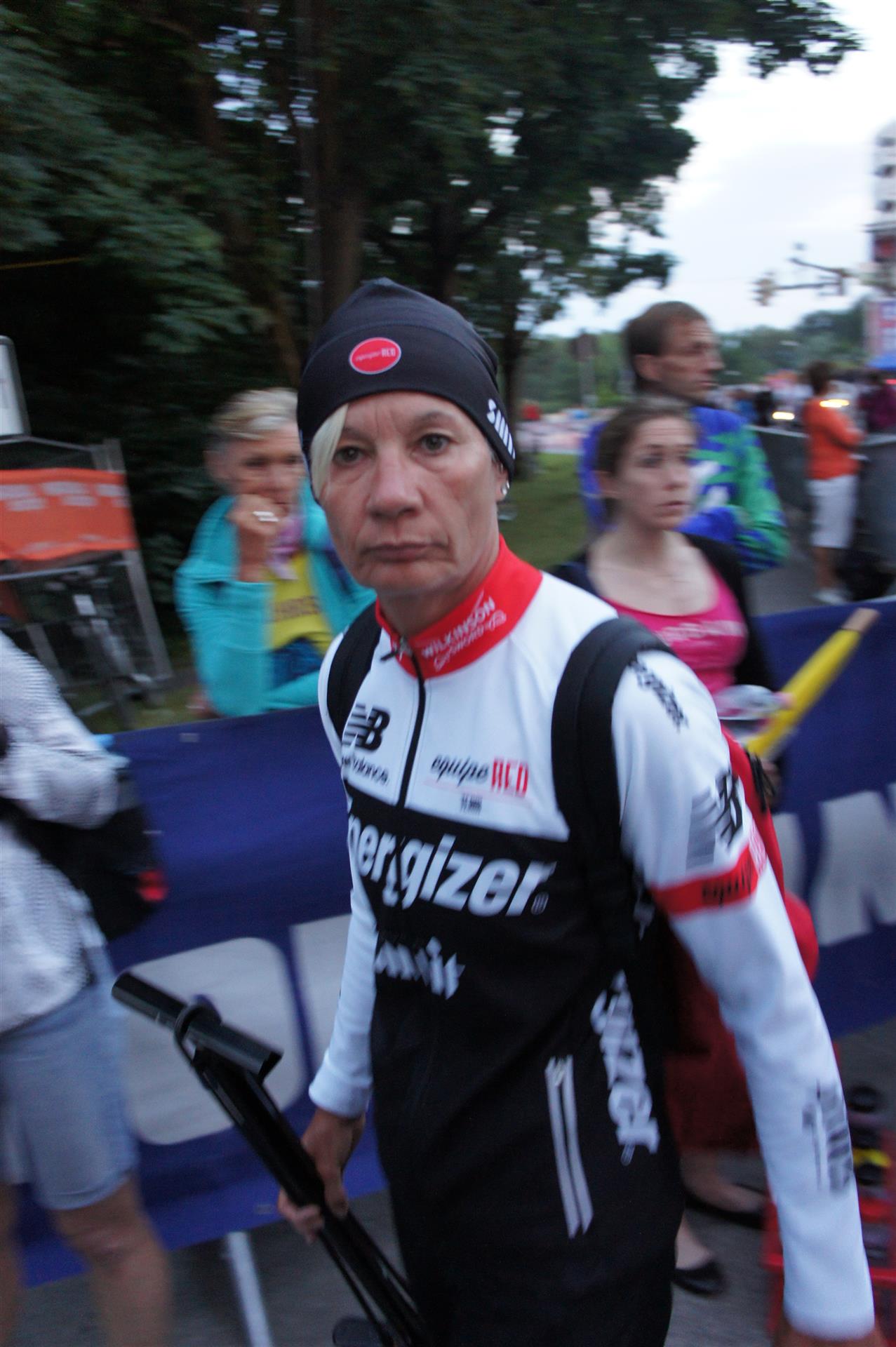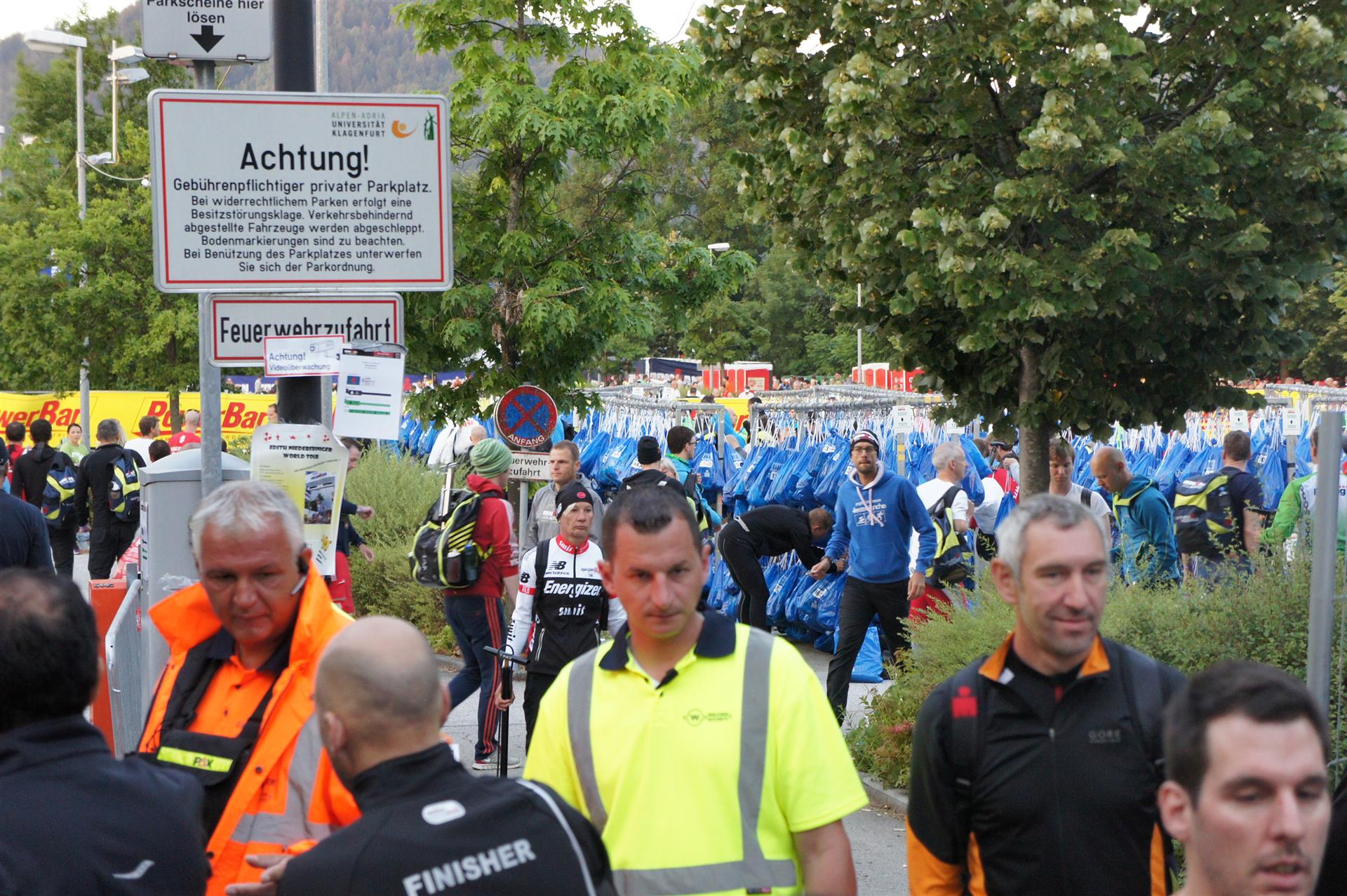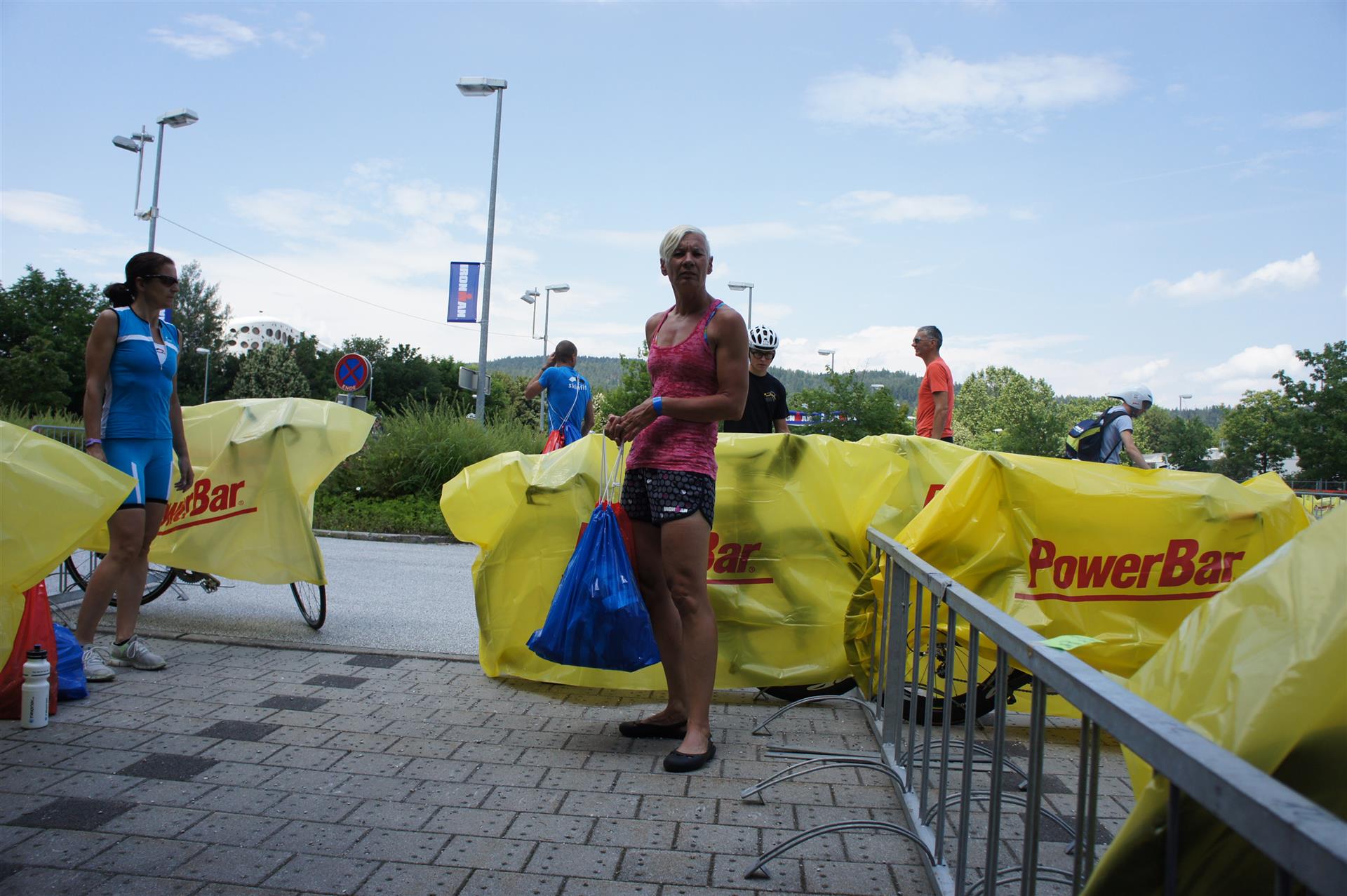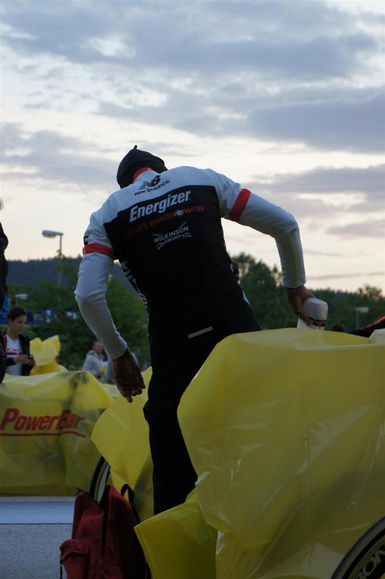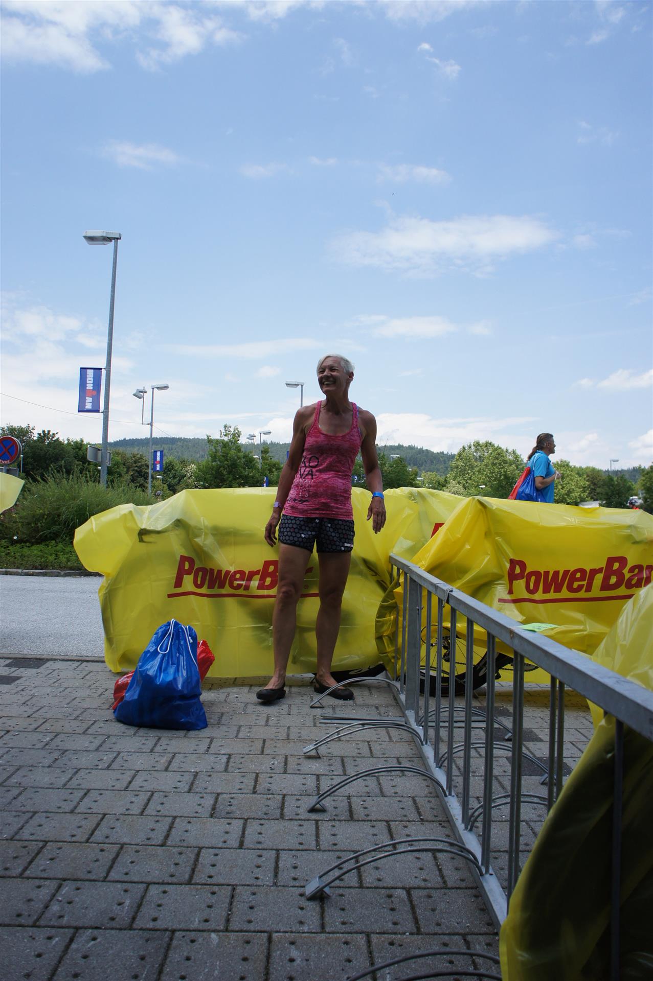 Nach einer Schwimmzeit von 1 Stunde und 11 Minuten verlasse ich das Wasser. Ich bin zufrieden mit meiner Zeit. Der Weg vom Schwimmausstieg bis in die Wechselzone ist relativ lange. Man hat ausreichend Zeit den Neoprenanzug etwas auszuziehen.
