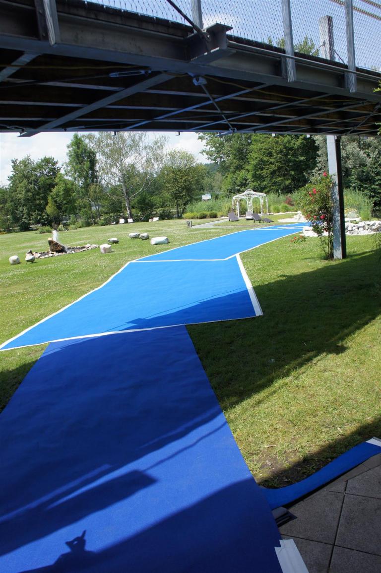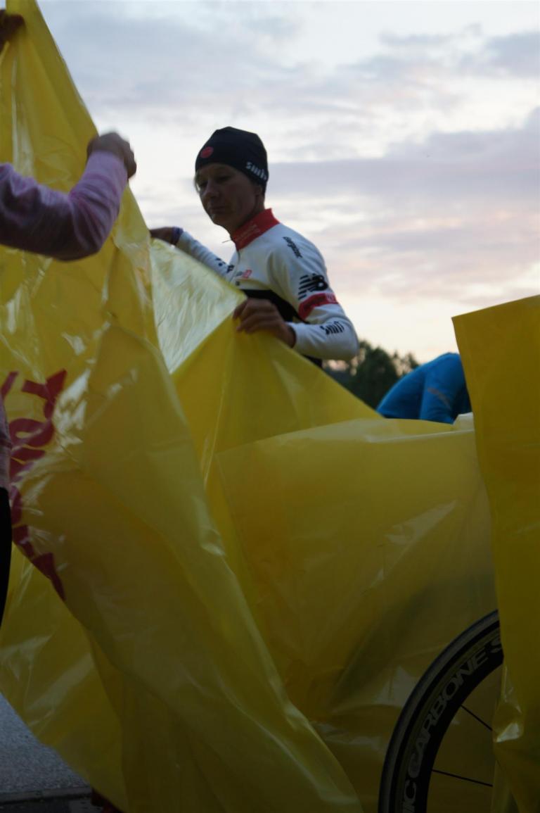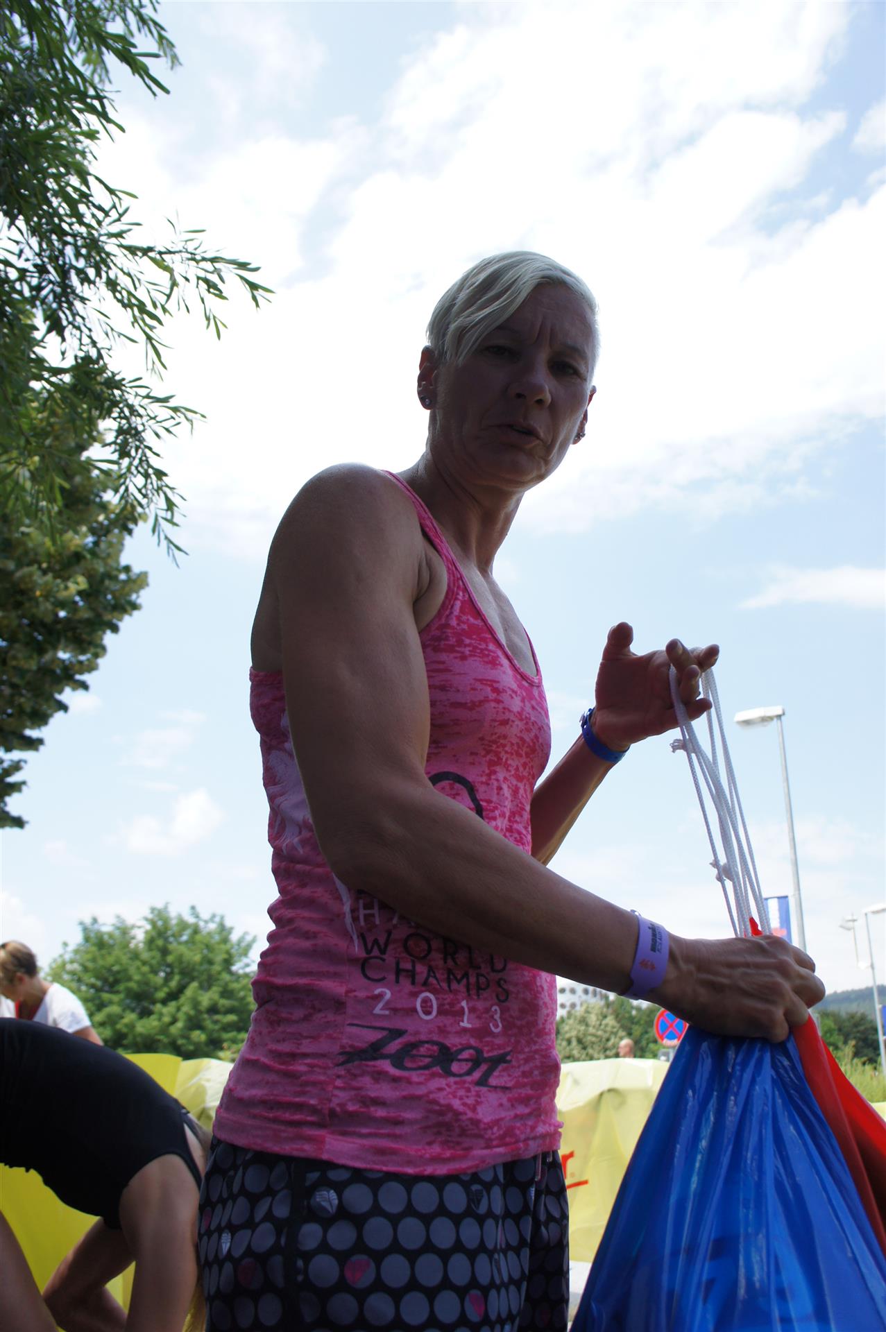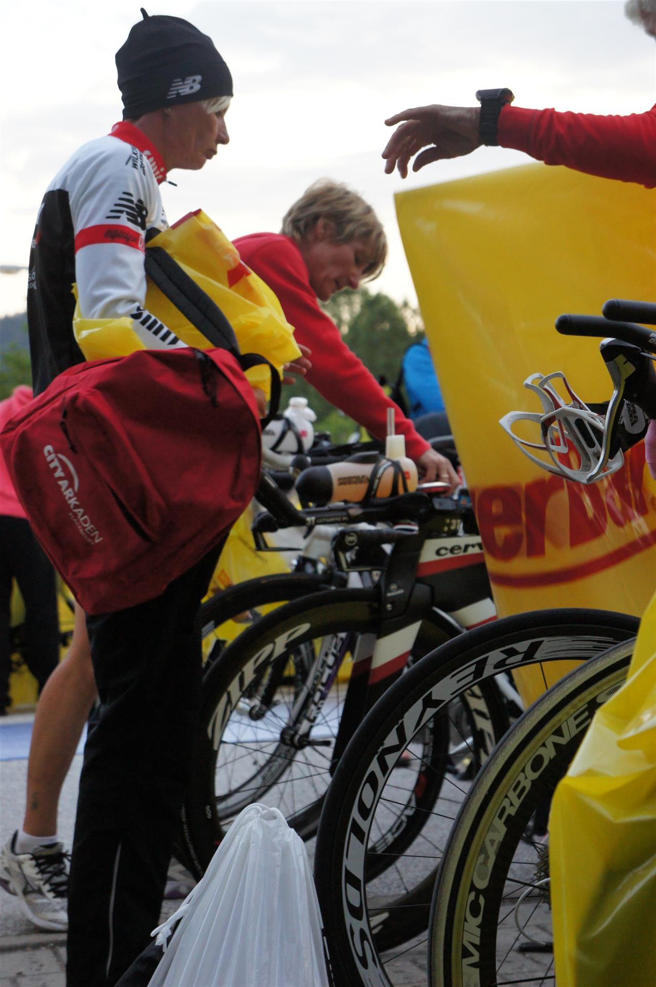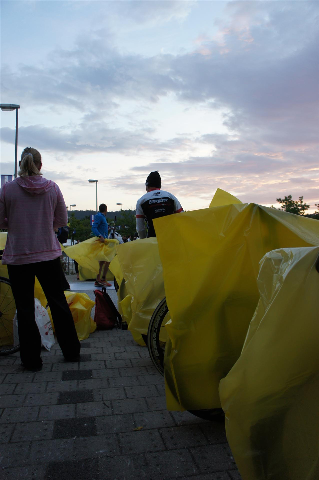 Nach einer Schwimmzeit von 1 Stunde und 11 Minuten verlasse ich das Wasser. Ich bin zufrieden mit meiner Zeit. Der Weg vom Schwimmausstieg bis in die Wechselzone ist relativ lange. Man hat ausreichend Zeit den Neoprenanzug etwas auszuziehen.
