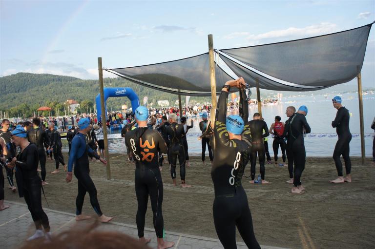 Wie bereits im Vorjahr gab es wieder eine frühere Startgruppe, die bereits um 6:45 Uhr zeitgleich mit den Profis startete. Glücklicherweise war ich in dieser Gruppe, was den Schwimmstart und das Schwimmen doch etwas angenehmer machte. Es ist schon ein Unterschied ob man mit ca. 2.600 Athleten an den Start geht oder nur mit einigen 100.