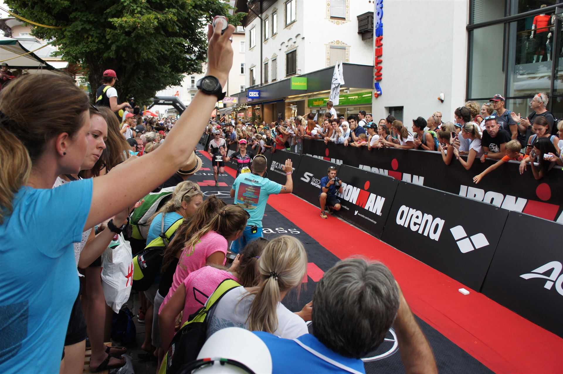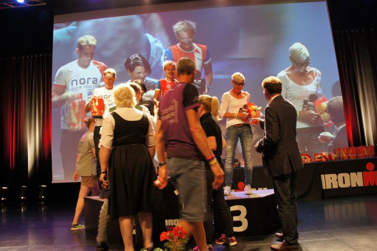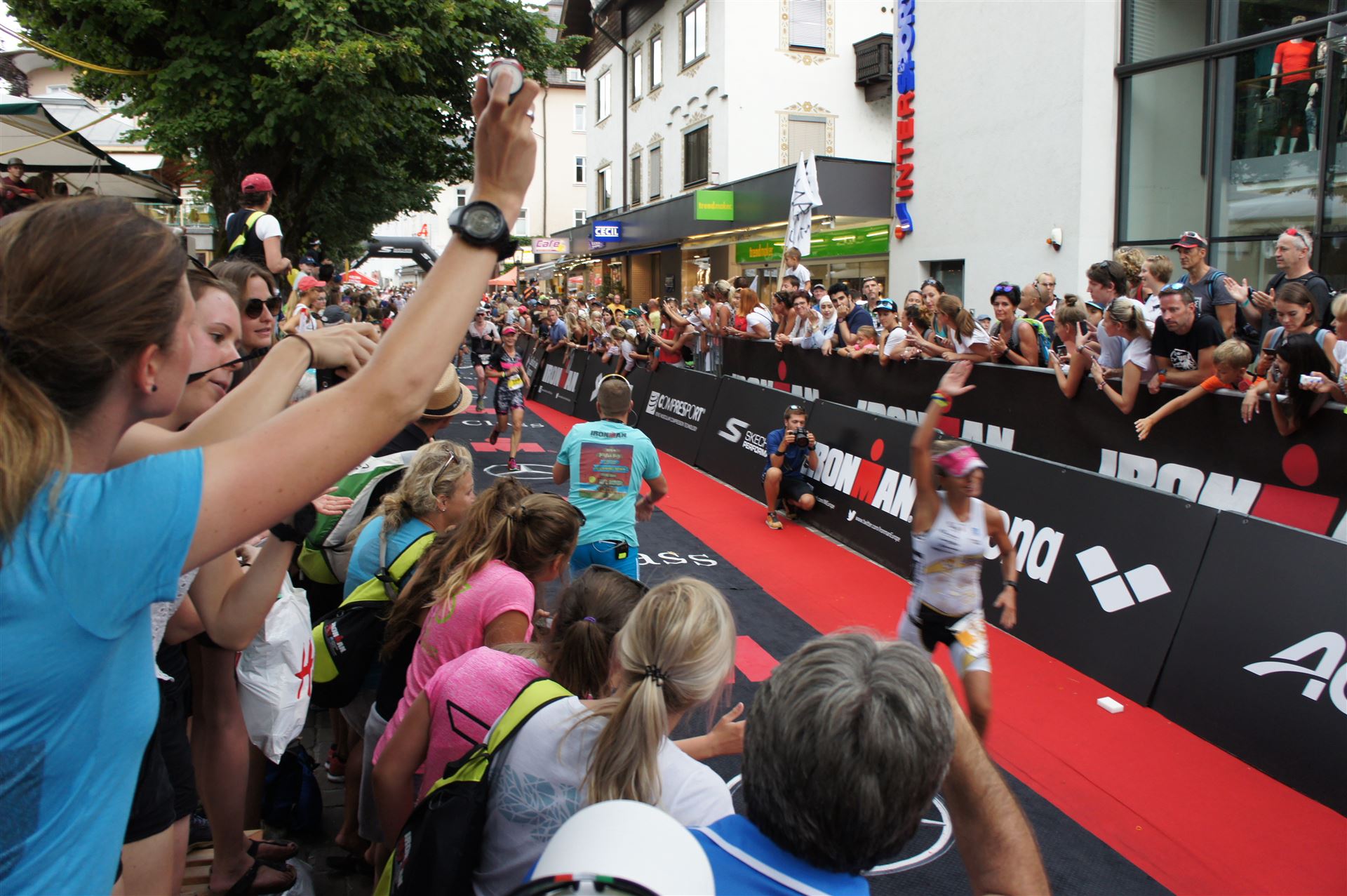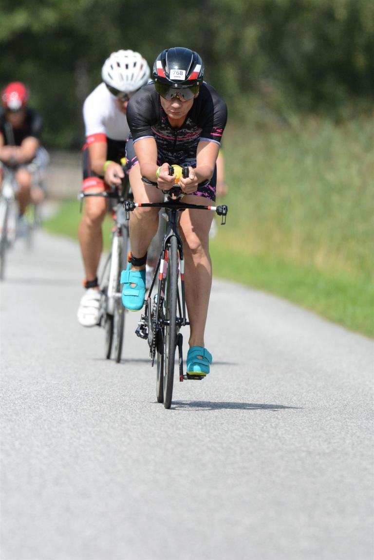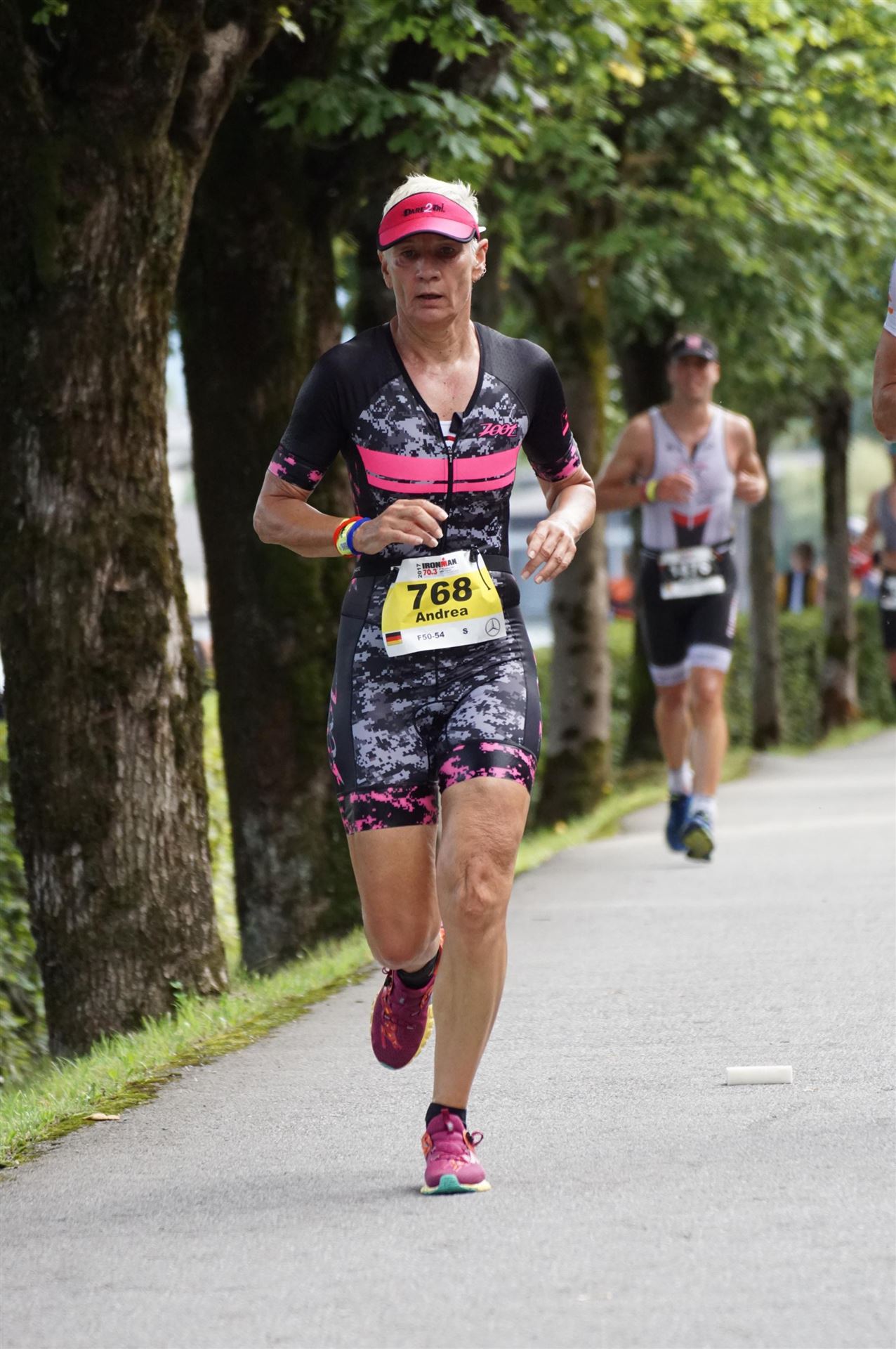 Die ersten 2-3 Kilometer fallen mir sehr schwer. Die Beine sind müde und ich kann mein Tempo nicht finden, was sehr ungewöhnlich für mich ist. Normalerweise habe ich keine Anlaufprobleme nach dem Rad. Meinem Rücken geht es sehr gut, daran kann es nicht liegen. Nachdem ich eine Runde durch die Stadt gelaufen bin und die Zuschauer mich angefeuert und motiviert haben geht es mir langsam besser. Mein Kopf ist positiv und die nächsten 18 Kilometer können kommen. Die Strecke führt am See entlang, ein tolles Panorama. Die Strecke ist teilweise Asphalt aber auch viel Schotter. Man gewöhnt sich irgendwann an den Schotter, die Zuschauer und die tolle Strecken helfen dabei. Gesamt werden 2 Runden mit einigen hoch-tief Passagen gelaufen. Das Ziel ist direkt in der Stadt. Die Finisherline ist voll, man wird angefeuert, es wird gejubelt, eine ganz tolle Stimmung. Für den Halbmarathon habe ich eine Zeit von 1:53:04 benötigt.