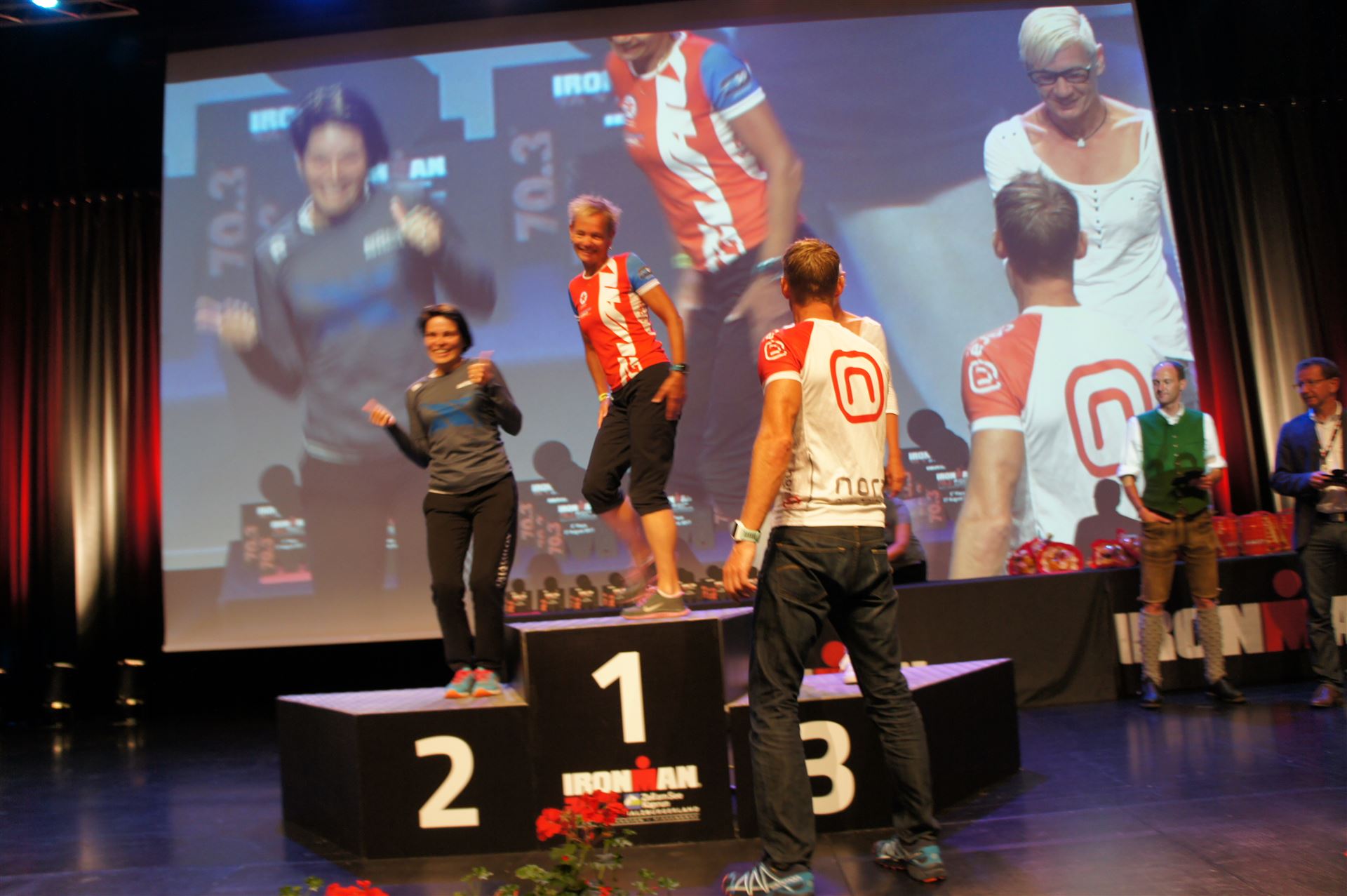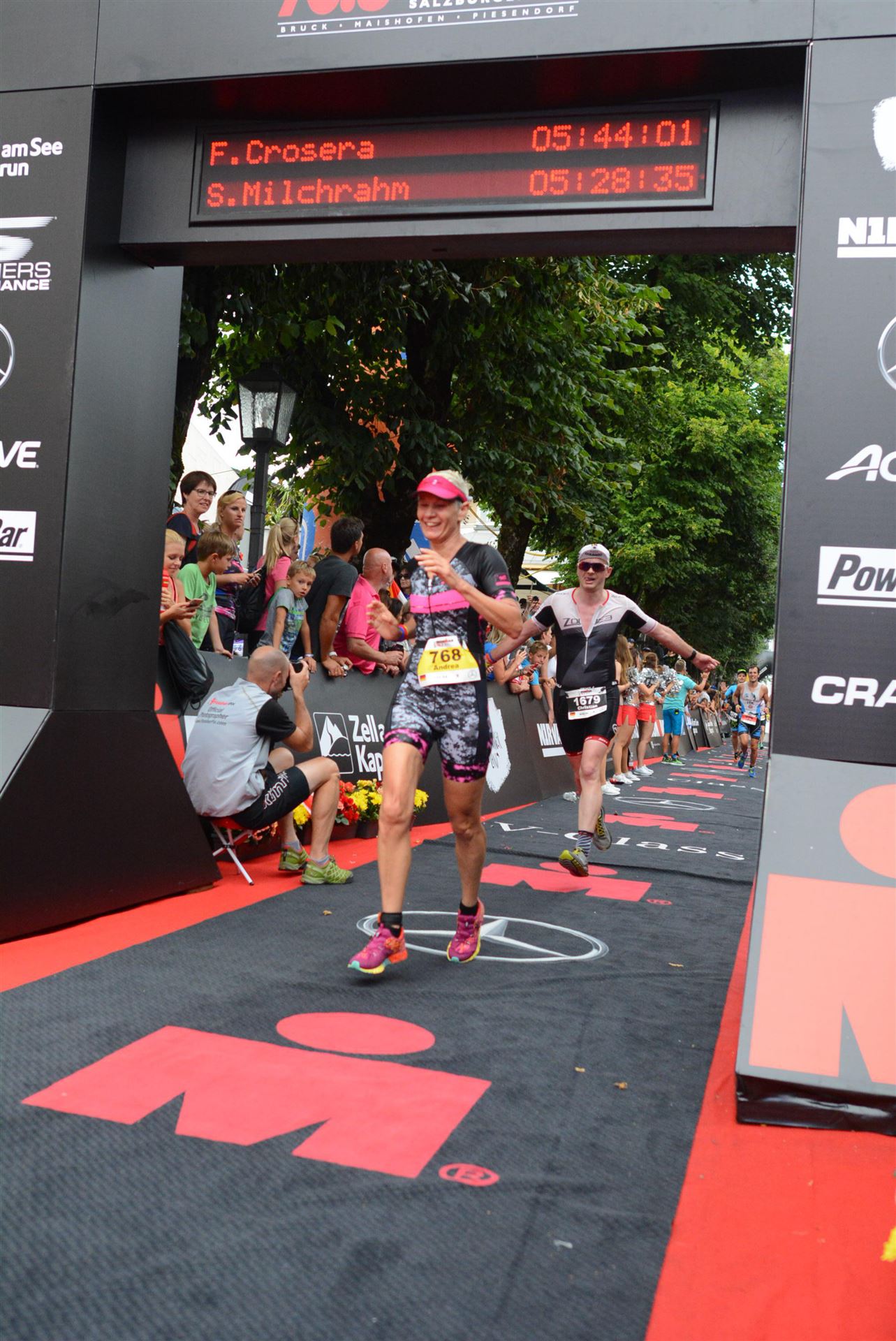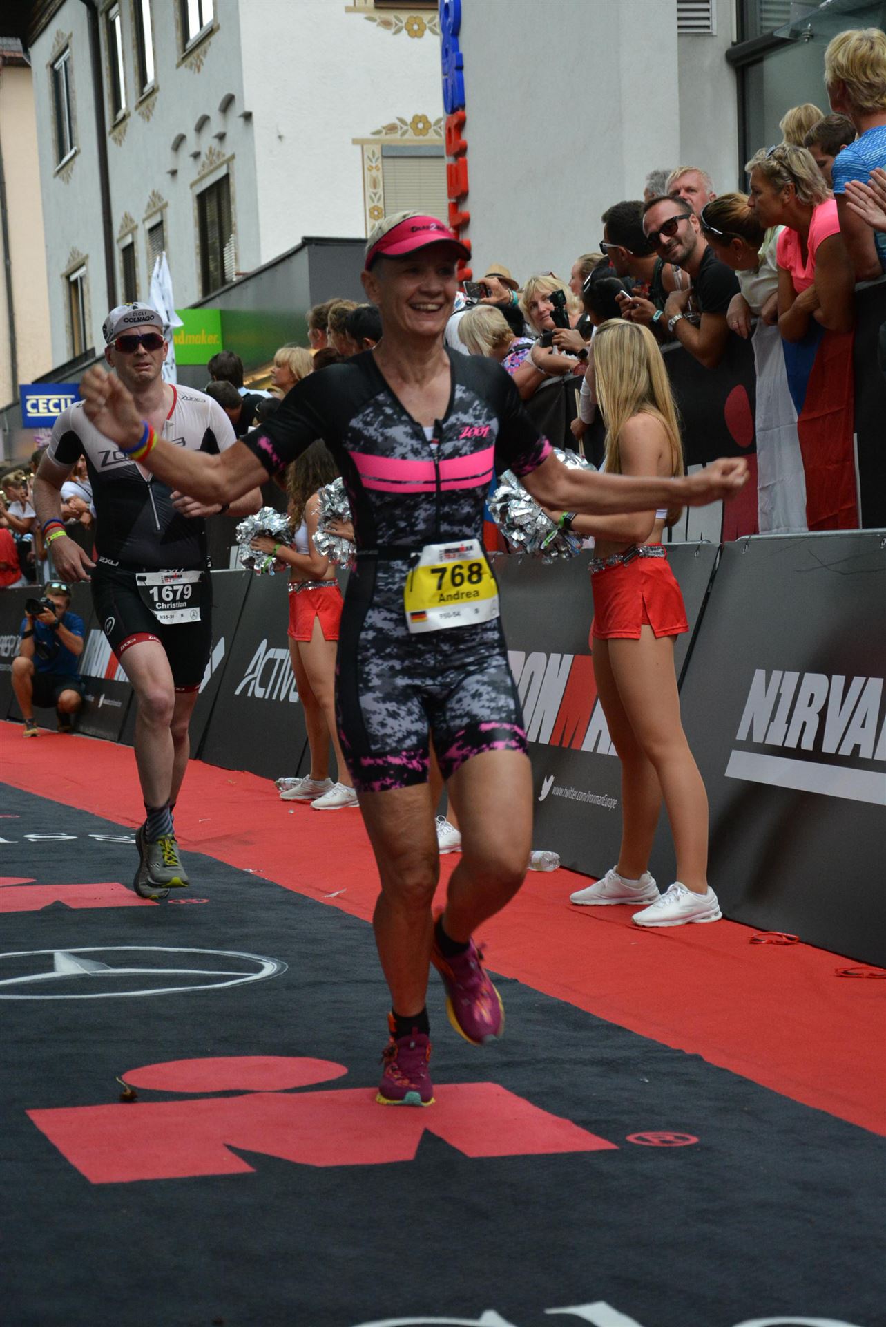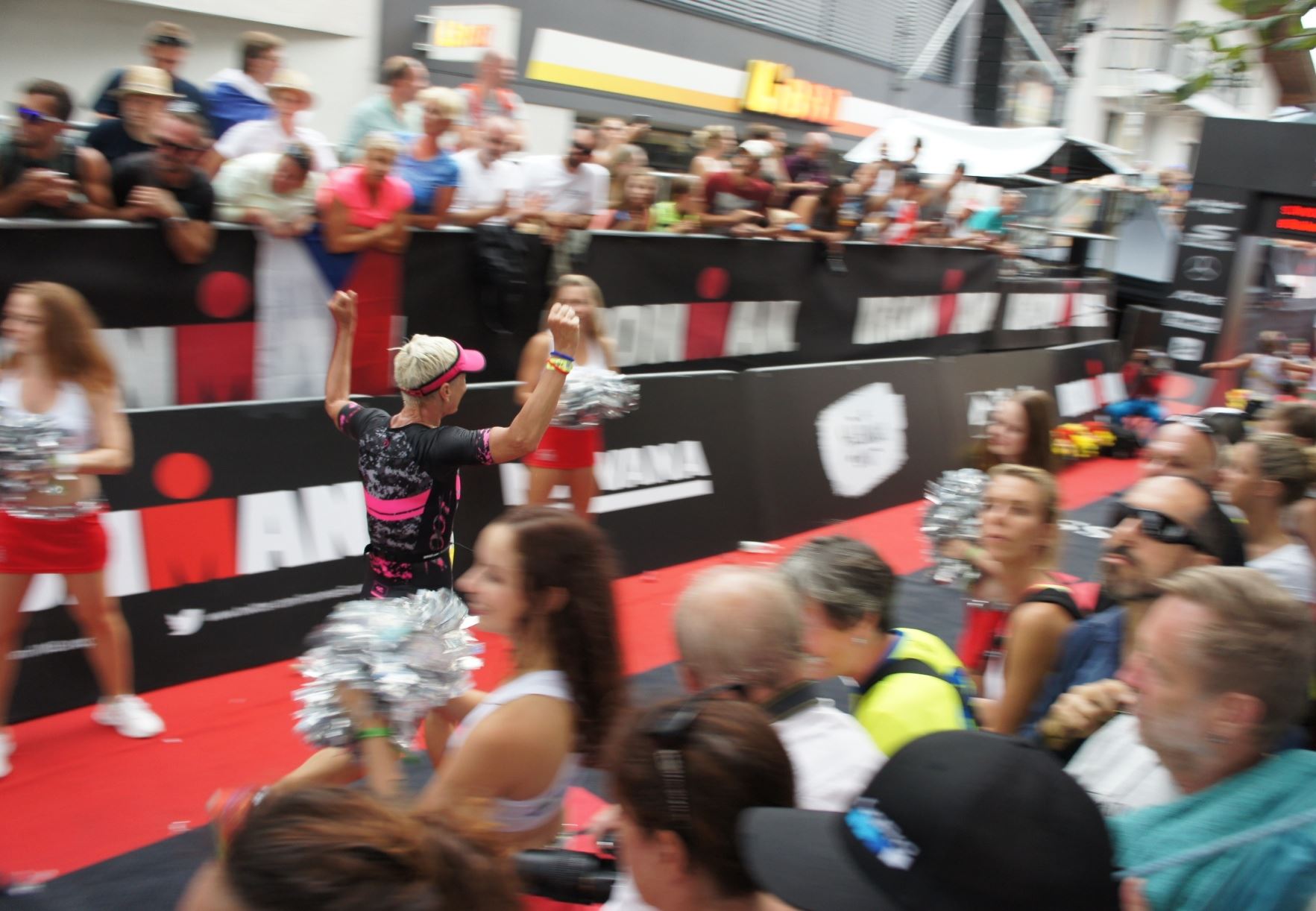 Die ersten 2-3 Kilometer fallen mir sehr schwer. Die Beine sind müde und ich kann mein Tempo nicht finden, was sehr ungewöhnlich für mich ist. Normalerweise habe ich keine Anlaufprobleme nach dem Rad. Meinem Rücken geht es sehr gut, daran kann es nicht liegen. Nachdem ich eine Runde durch die Stadt gelaufen bin und die Zuschauer mich angefeuert und motiviert haben geht es mir langsam besser. Mein Kopf ist positiv und die nächsten 18 Kilometer können kommen. Die Strecke führt am See entlang, ein tolles Panorama. Die Strecke ist teilweise Asphalt aber auch viel Schotter. Man gewöhnt sich irgendwann an den Schotter, die Zuschauer und die tolle Strecken helfen dabei. Gesamt werden 2 Runden mit einigen hoch-tief Passagen gelaufen. Das Ziel ist direkt in der Stadt. Die Finisherline ist voll, man wird angefeuert, es wird gejubelt, eine ganz tolle Stimmung. Für den Halbmarathon habe ich eine Zeit von 1:53:04 benötigt.