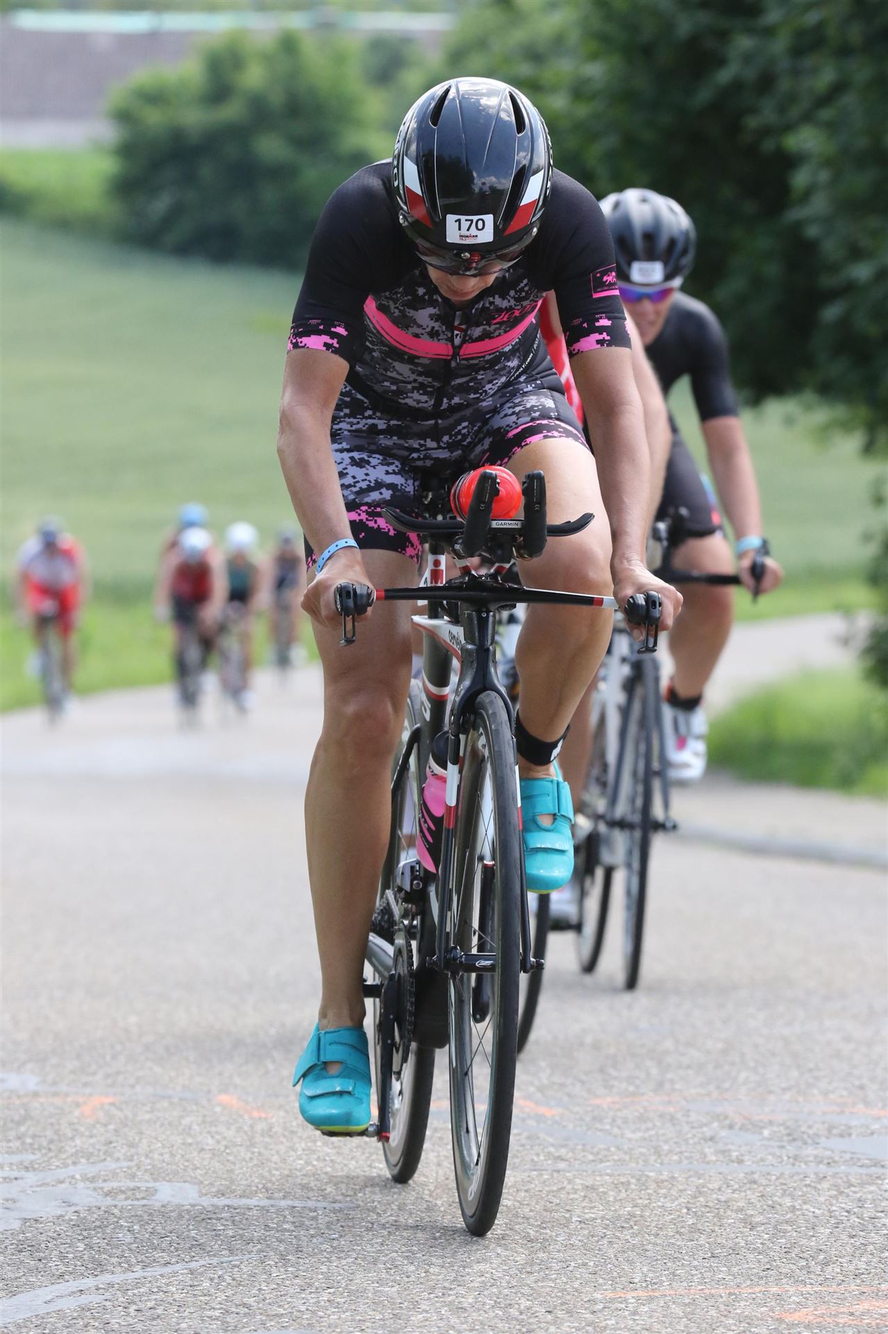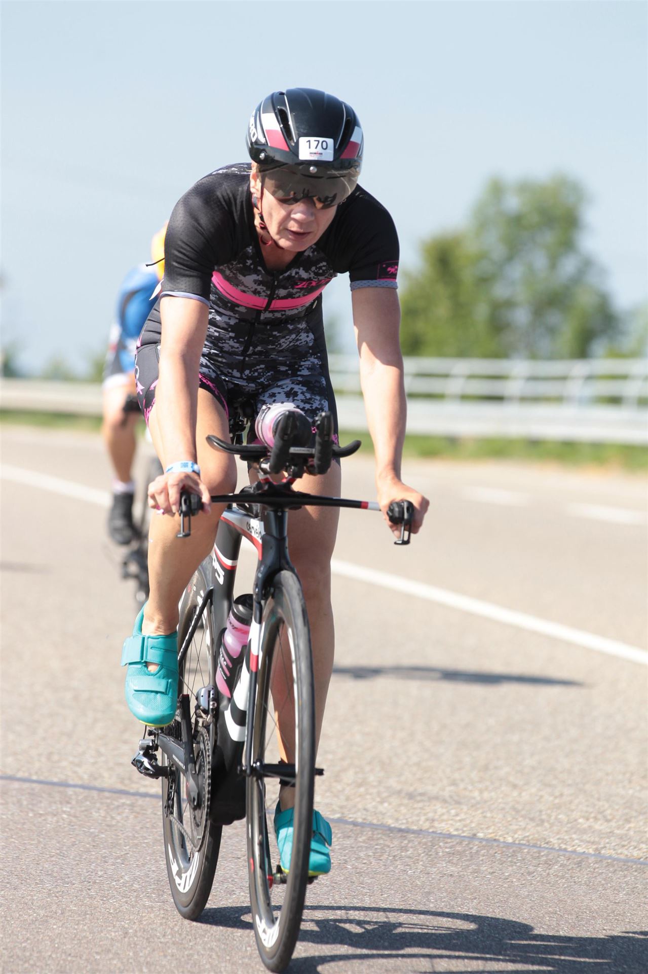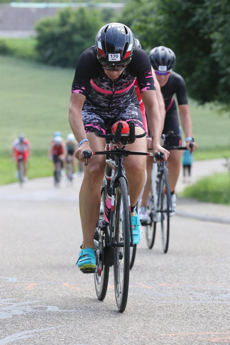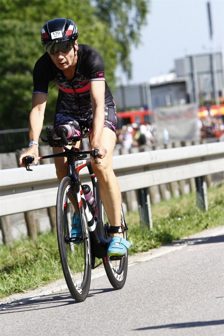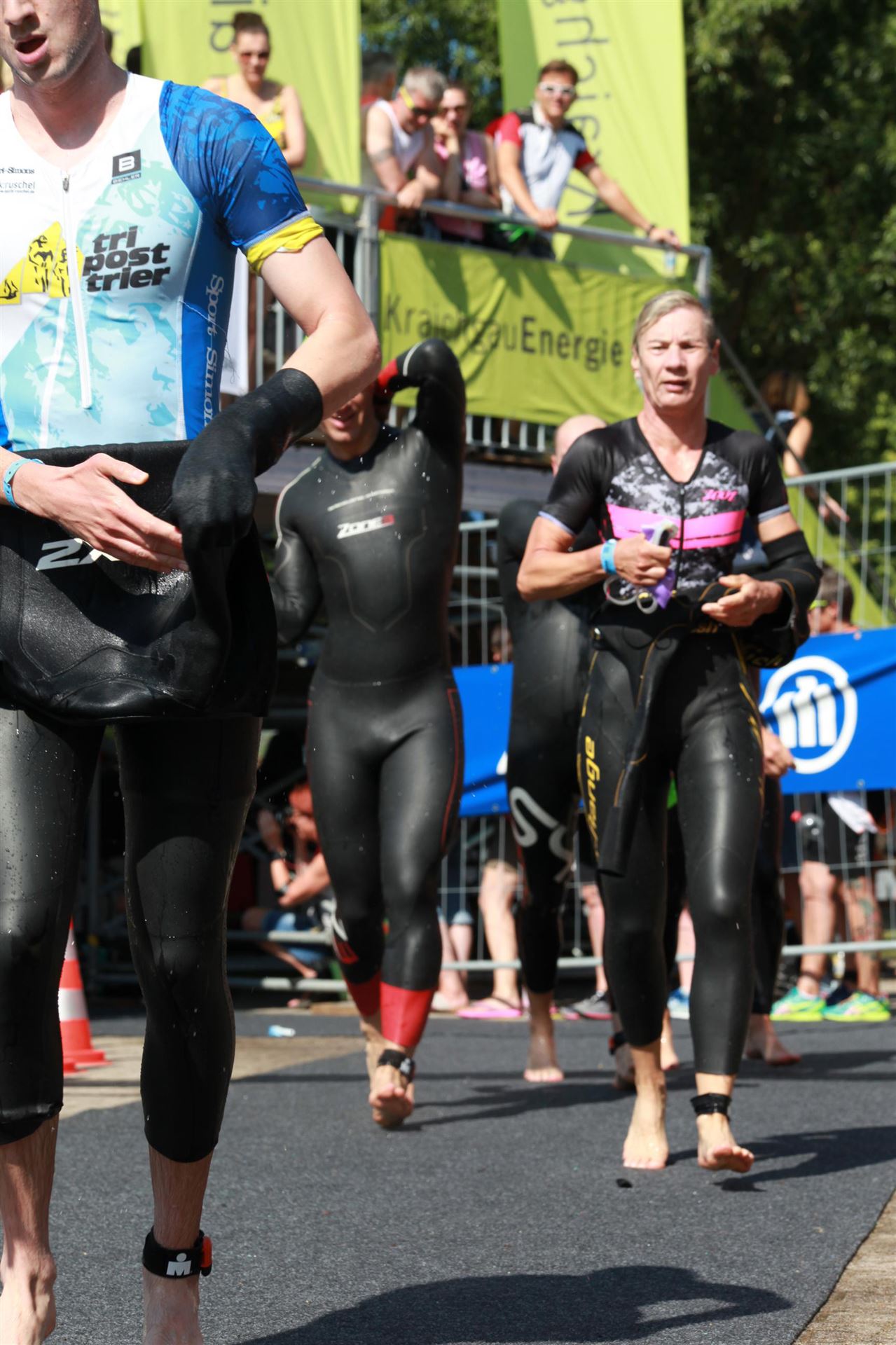 Geschwommen wurde im Hardtsee in Ubstadt-Weiher. Bei einer Wassertemperatur von 23,7 Grad durften wir mit Neo schwimmen, für die Profis galt Neoverbot. Mit einer Schwimmzeit von 36:25 ging ich als 3. Frau in meiner AK aus dem Wasser.