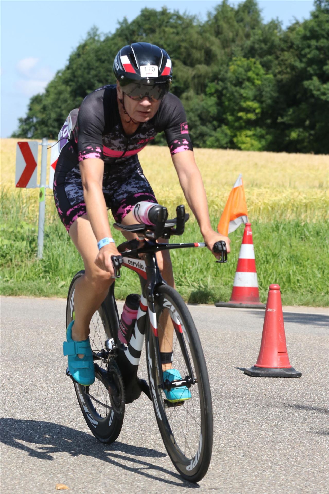 Mit diesem Platz war für mich klar, ich muss Gas geben. Trotz Hitze versuchte ich ein konstantes und zügiges Tempo zu laufen. 3 Runden a 7 Kilometer mit einigen kleinen Anstiegen und viel Sonne. Bei Temperaturen um die 30 Grad war man um jede Abkühlung dankbar. Einige Anwohner standen mit dem Gartenschlauch an der Strecke und gaben den Athleten die Möglichkeit sich etwas abzukühlen. Den Halbmarathon konnte ich in einer Zeit von 1:45:33 laufen. Nach insgesamt 5:33:56 ging ich nach einem tollen Wettkampf und einem 1. Platz in der AK 55 durchs Ziel. Ich hatte nicht damit gerechnet, solch eine Platzierung zu erreichen. Jetzt gibt es einige Tage lockeres Training und dann geht es zum Endspurt für die Langdistanz. Das teilweise sehr harte Training der letzten Wochen und Monaten hat sich definitiv bereits jetzt gelohnt.