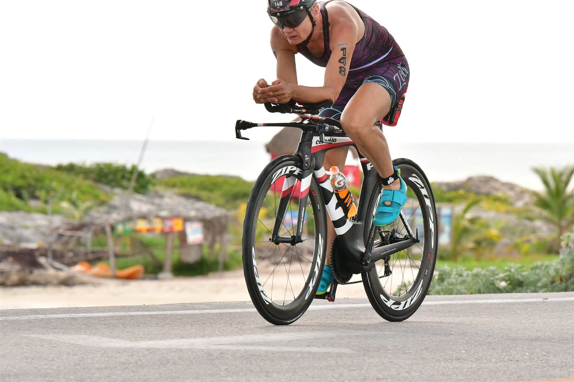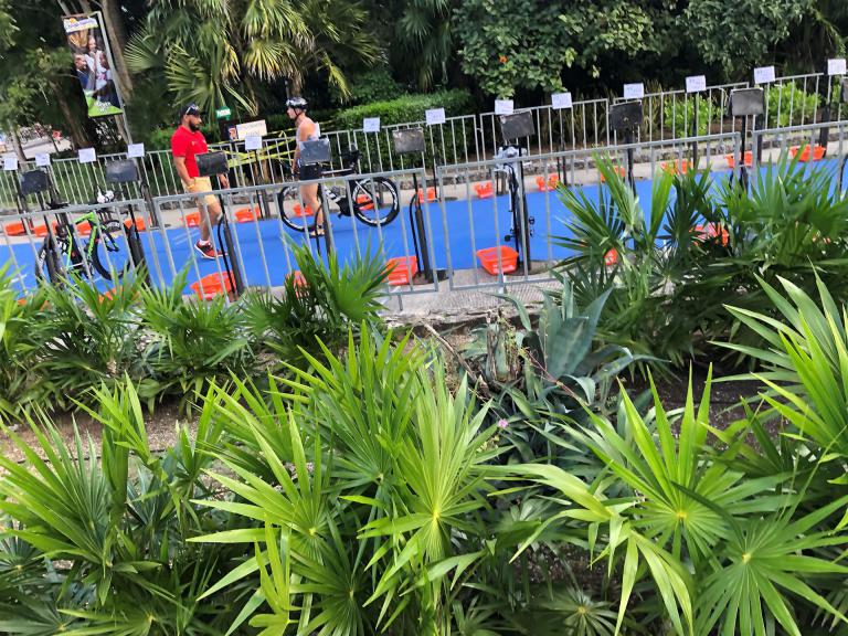 Um kurz vor 7:00 Uhr ist die Nacht vorbei. Da es relativ früh dunkel wird, steht man auch entsprechend früh auf. Nach dem Frühstück geht es mit dem Rad los. Einmal die Wettkampfstrecke abfahren, sprich einmal um die Insel. Inzwischen sind einige Athleten unterwegs. Es gibt einen tollen Radweg, der fast komplett parallel zur Straße geht. Es gibt kaum Verkehr, der Wind ist okay, die Wettkampfstrecke ohne Überraschungen. Unterwegs gibt es sogar Schilder mit dem Hinweis Athleten im Training. Eine Runde sind circa 63 Kilometer, fast alles mit Radweg. Nur das Stück durch die Stadt ist etwas blöd, der Rest jedoch perfekt. Im Anschluss an das Rad fahren stehen noch 30 Minuten lockere Grundlage Laufen auf dem Plan. Danach liegen wir etwas im Schatten am Pool. Inzwischen sind noch einige Athleten im Club angekommen. Zum Abendessen gibt es heute mal Buffet, danach noch etwas chillen und dann ab ins Bett.
