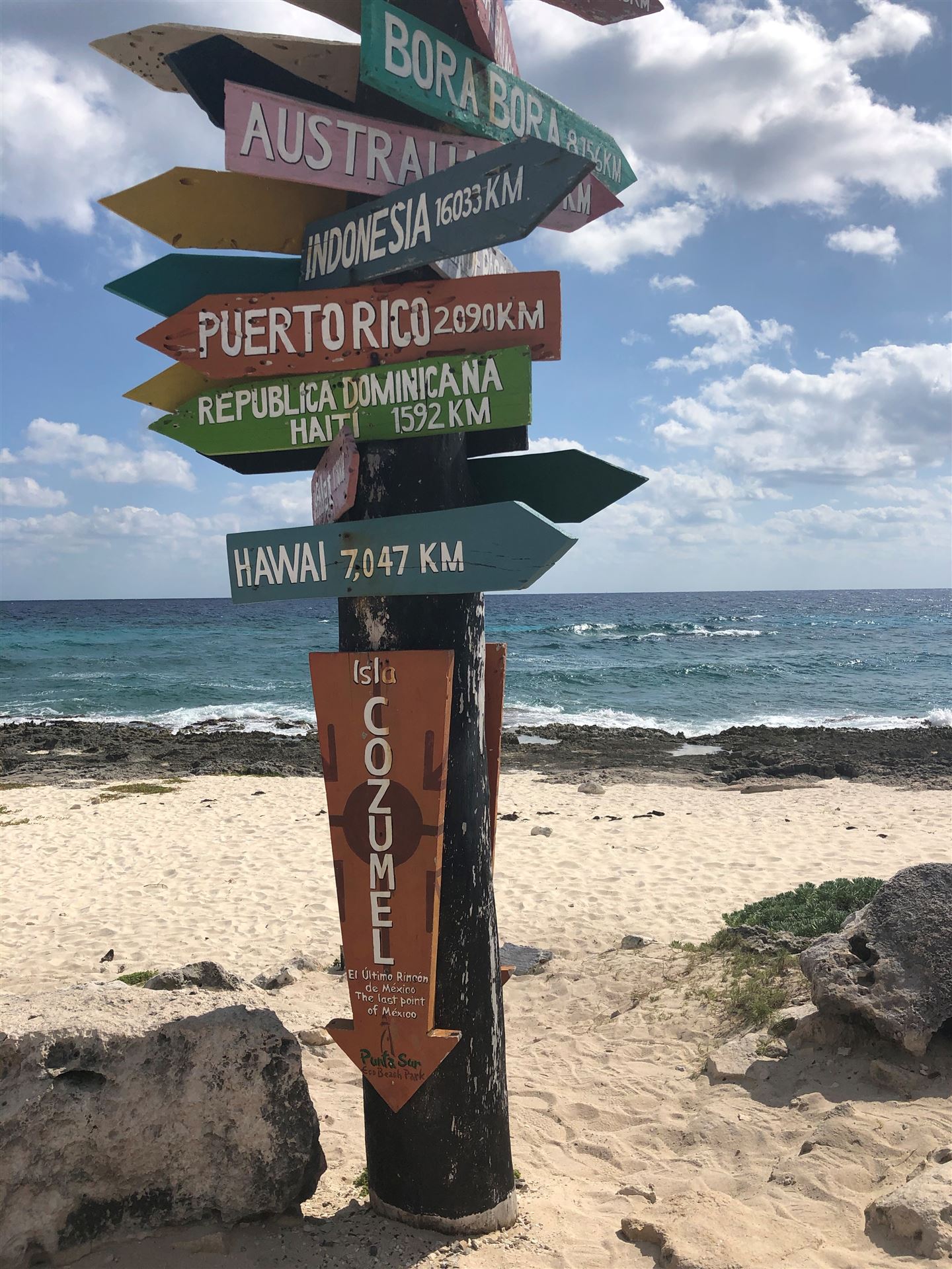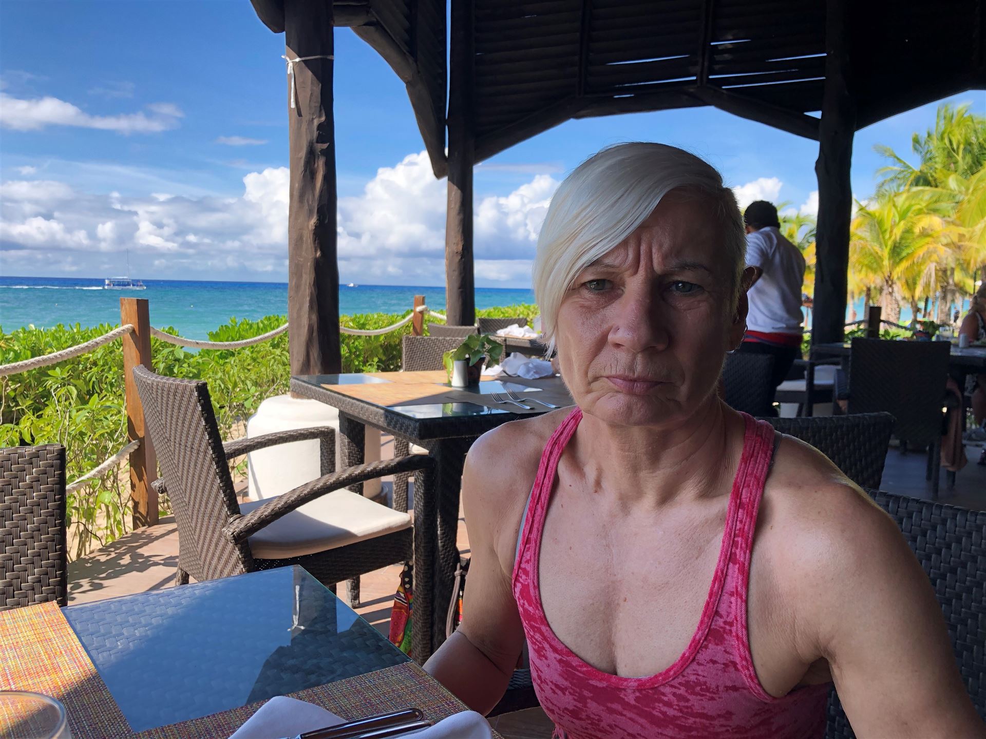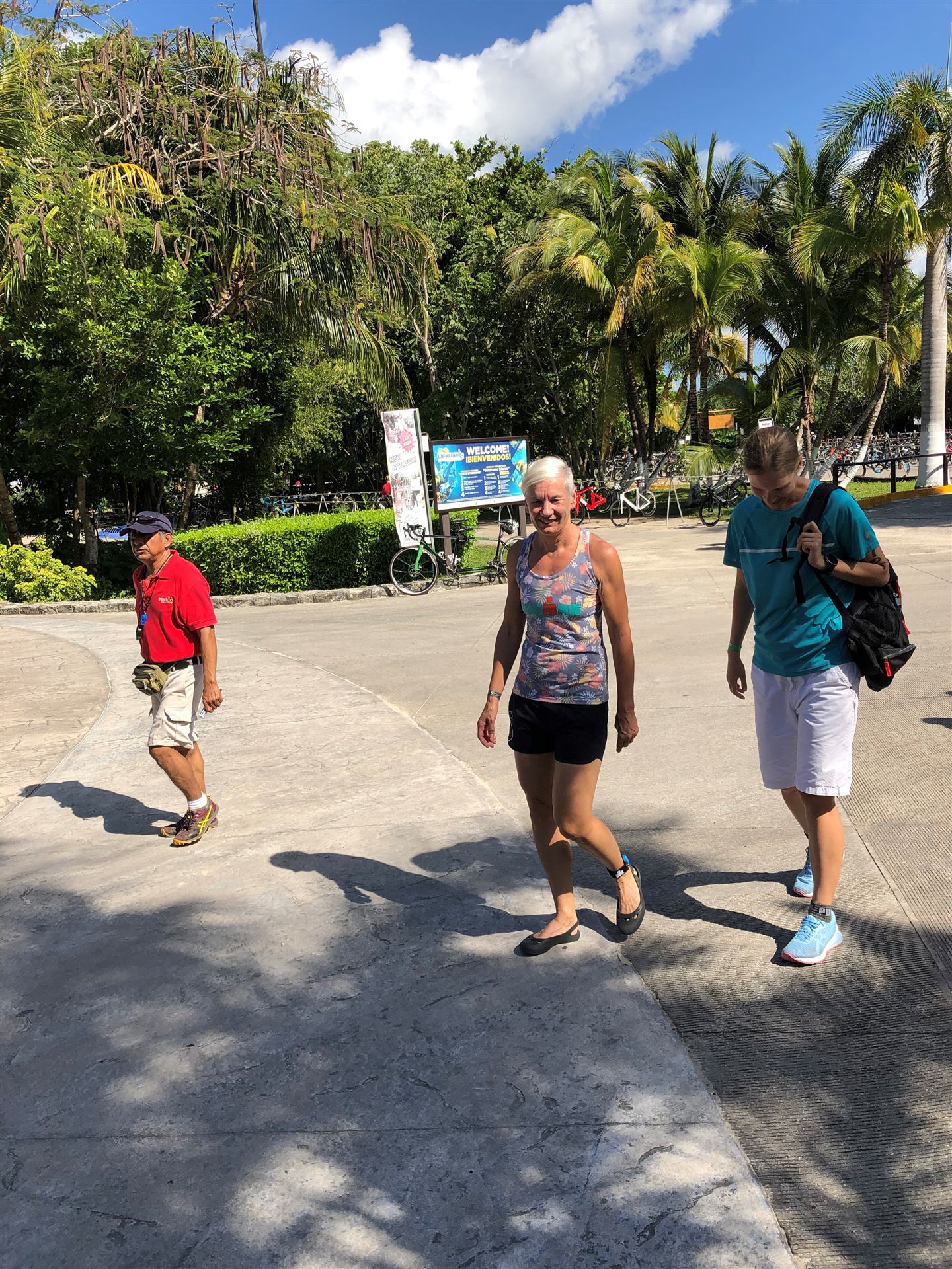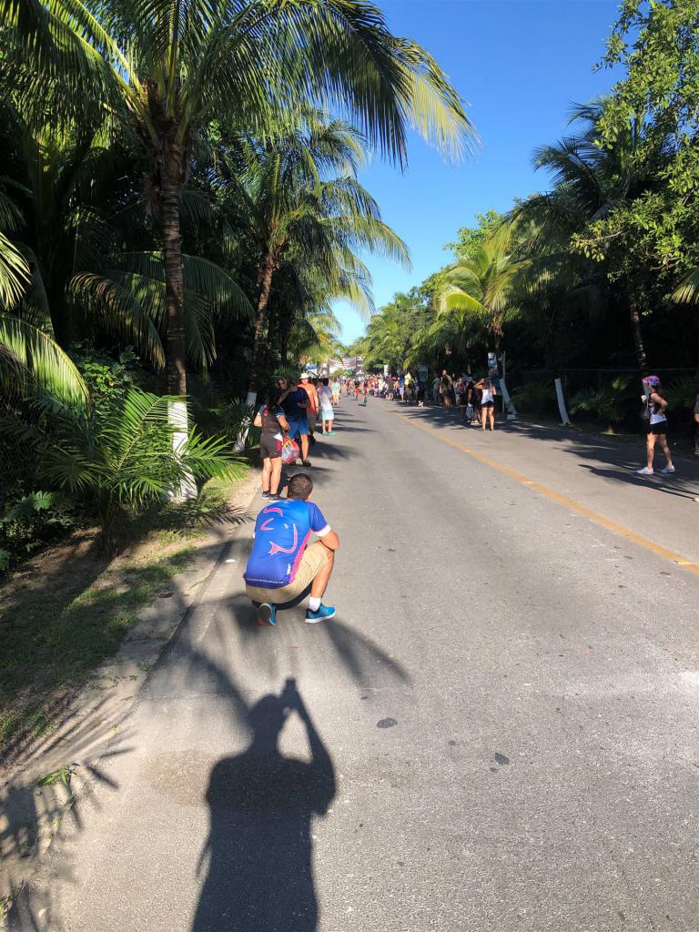 Die Anreise nach Cozumel hat relativ gut geklappt. Wir sind leider etwas später in Frankfurt abgeflogen und hatten bei der Ankunft in Cancun 1 Stunde Verspätung. Die Einreise nach Mexiko ist nervig. Ewig lange Schlangen, in der Summe hat es zwei Stunden gedauert, bis wir endlich draußen waren. Erfreulich war, dass unser Gepäck bereits abholbereit da stand. Am Ausgang wurden wir bereits erwartet, innerhalb von 5 Minuten war ein Taxi da und es ging in Richtung Fährhafen, die Tickets waren bereit für uns reserviert. Die Fahrt war relativ lange. Das letzte Stück mussten wir zu Fuß gehen Mit zwei Rädern und zwei Koffern über Kopfsteinpflaster, das macht Laune. Unterwegs wurde uns von Mexikanern zugerufen wir sollen uns beeilen, die Fähre legt in 4 Minuten ab. Also noch einmal Tempo zugelegt und gerade noch geschafft. Auf der Fähre gab es Livemusik, Songs von Santana. Mal etwas anderes.