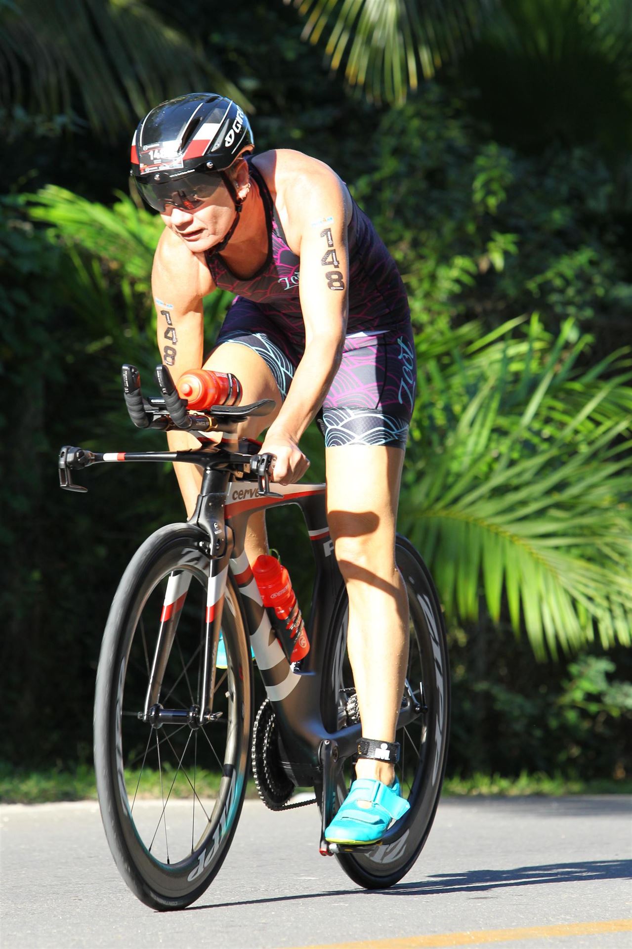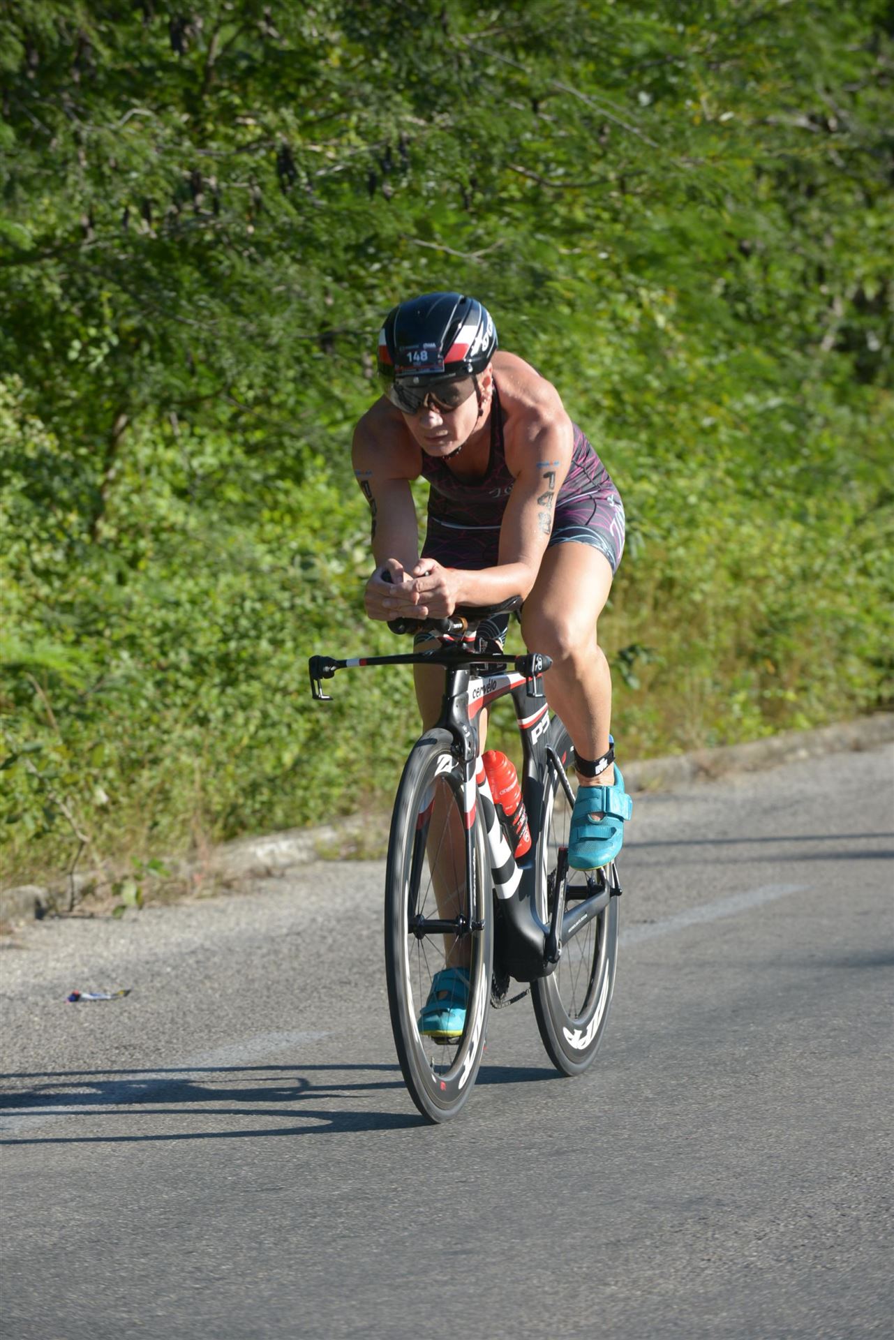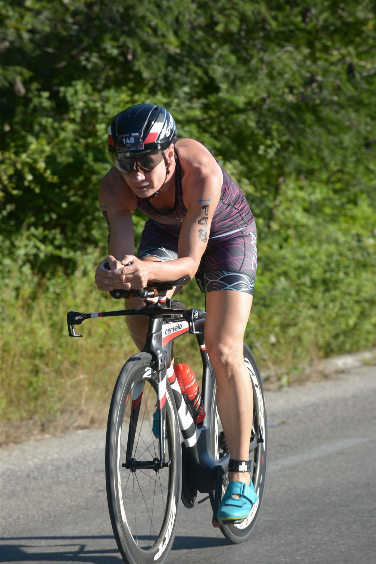 Mein Magen rebelliert, ich bin aber froh, dass ich das Schwimmen gut hinter mich gebracht habe. Raus aus den Schwimmsachen und rein in die Radsachen.