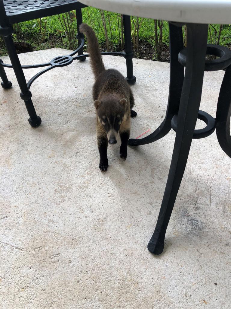 Die Nasenbären tummeln sich auch ab und an am Pool, es könnte ja etwas zum Essen geben.