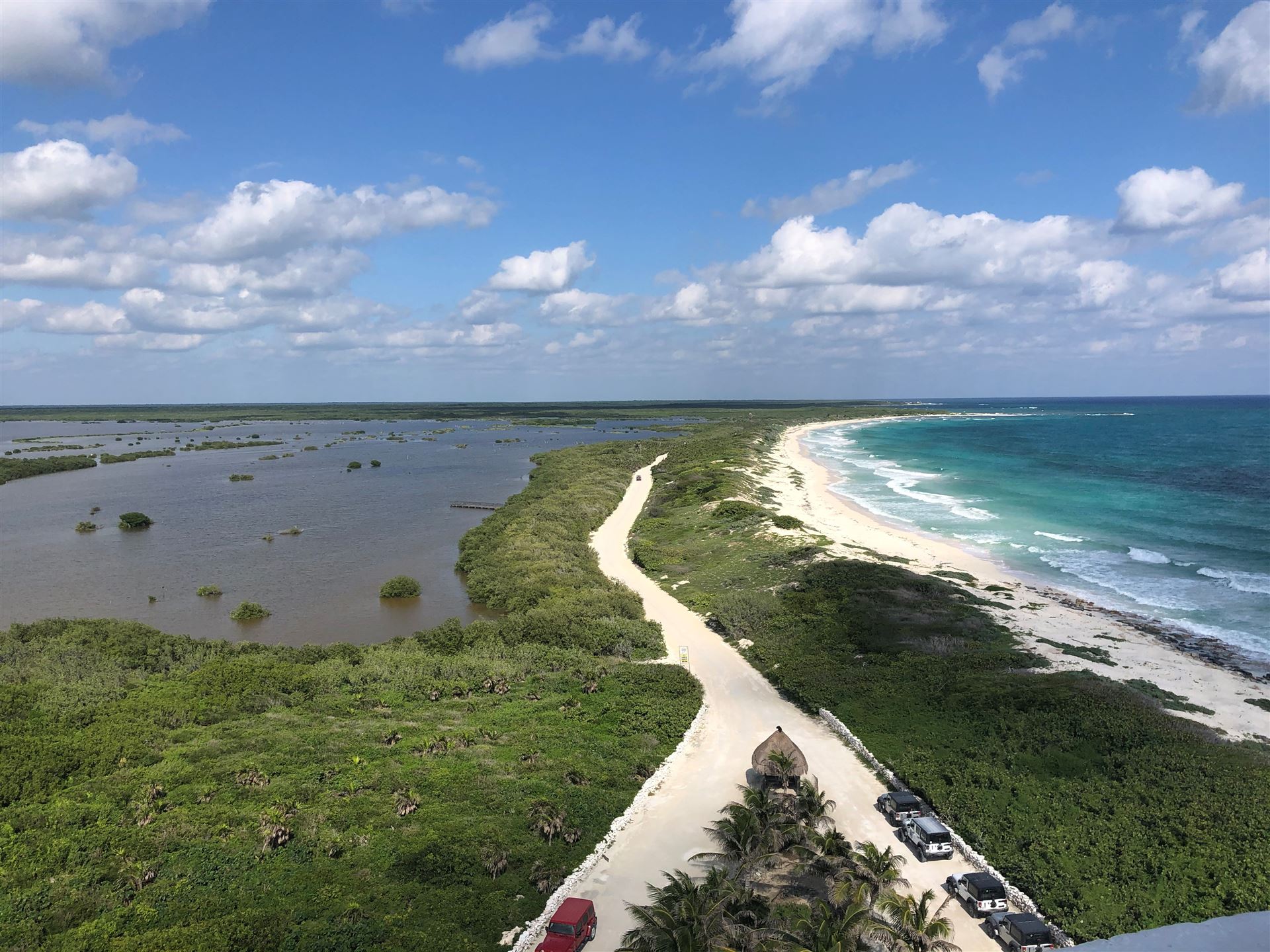 Man kann nachts relativ gut schlafen, die Temperaturen sind angenehm. Wir sind heute früh auf. Heute steht die erste Radeinheit auf dem Plan. Wir fahren einen Teil der Wettkampfstrecke ab. Es ist sehr windig, da muss man stellenweise aufpassen. Nach ein paar Kilometern hat man sich daran gewöhnt. Unterwegs trifft man einige Athleten. Direkt am Meer ist der Wind ganz schön arg. Die Landschaft ist toll, alles grün. Sehr wenig Autoverkehr. Nach dem Rad gibt es noch einen Koppellauf, inzwischen ist es gut warm. Das Meer ist heute auch sehr wellig und aufgewühlt. Es hängt die rote Fahne. Zum Mittagessen sitzen wir mit Blick aufs Meer im Beachrestaurant. Das ist Urlaub. Am Abend probieren wir die internationale Küche in einem weiteren Spezialitätenrestaurant aus. Tolles Essen, super Ambiente und ganz tolle Bedienung. Nach einem kleinen Absacker geht es Richtung Zimmer bzw. Bett. Ach übrigens, hier gibt es ganz viele Nasenbären, sehr zutraulich. Man muss aufpassen, die kommen ins Zimmer.