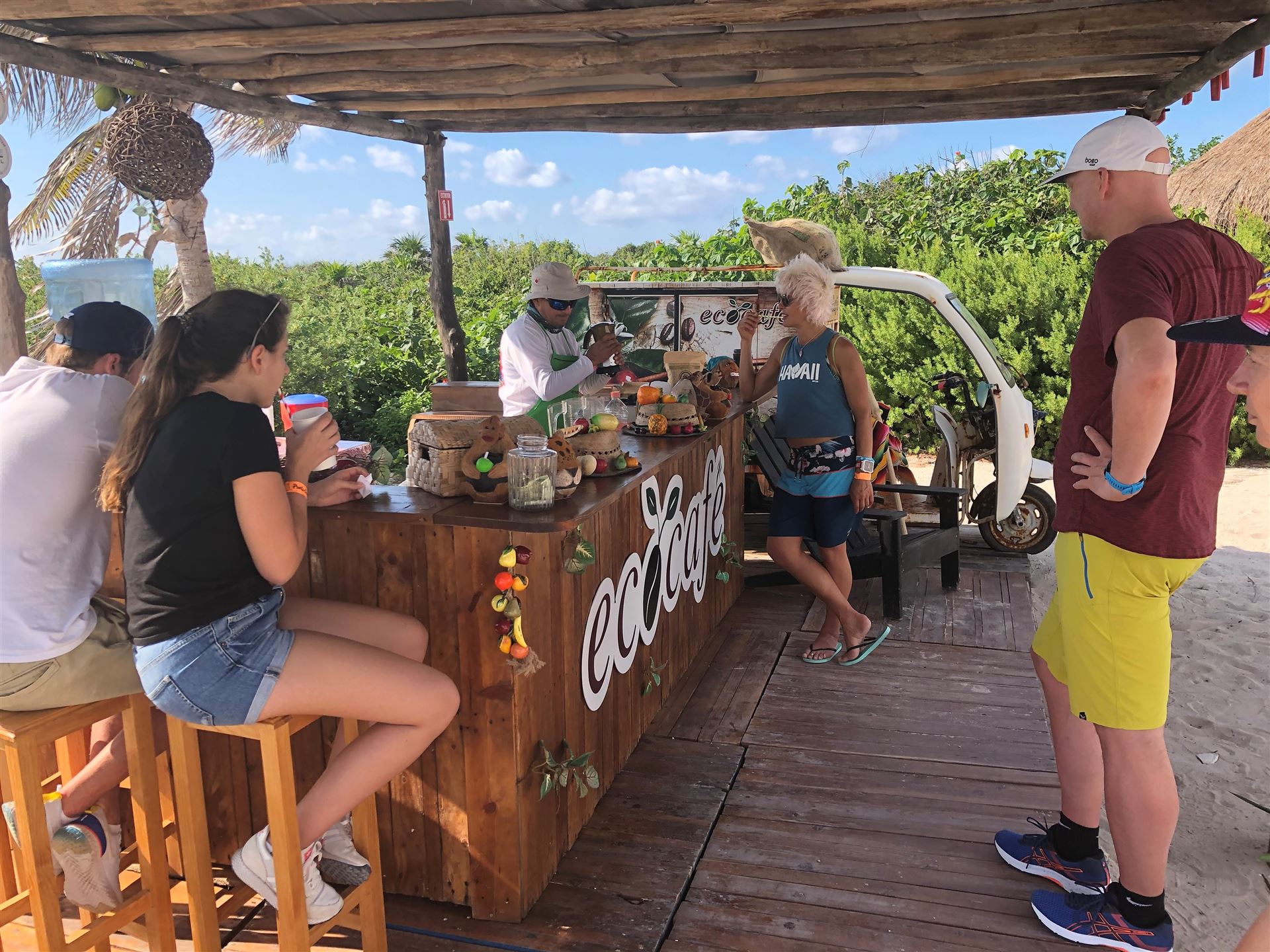 Danach haben wir es uns etwas am Hängematten-Beach gemütlich gemacht. Es gab frische Kokosnussmilch, ist nicht mein Fall. Zum Schluss waren wir noch am Leuchtturm. Da gab es dass weltbeste gecrashte Eis mit Kaffee. Als Abschluss waren wir noch am Strand, da drücken hohe Wellen das Wasser mit einem lauten Zischen aus dem Boden. Am späten Nachmittag waren wir noch in der Stadt, die Startunterlagen abholen.