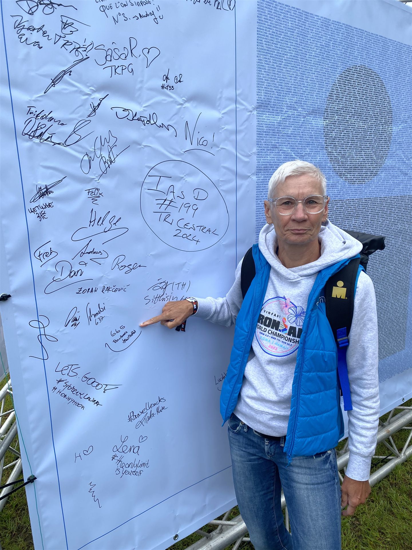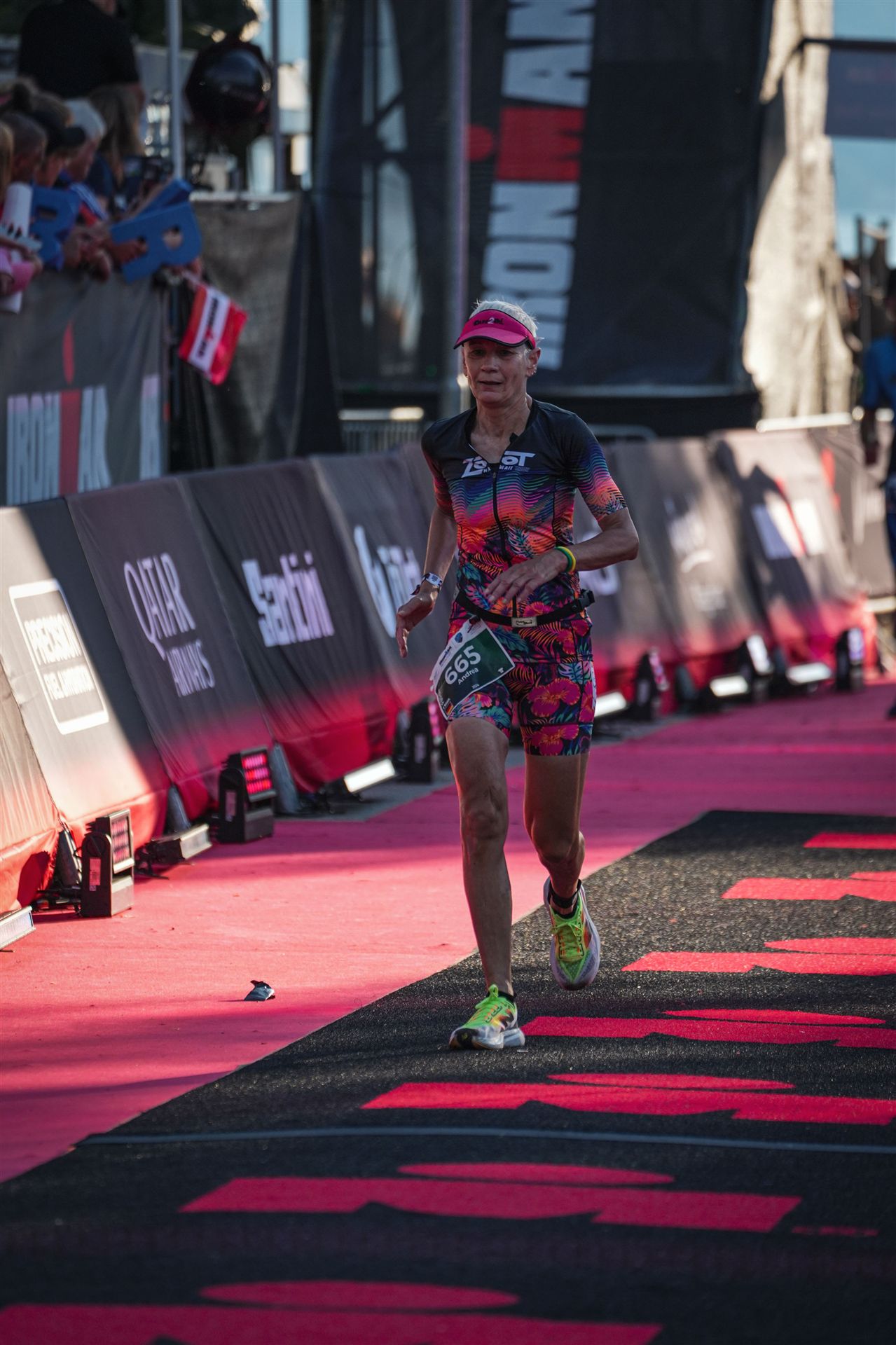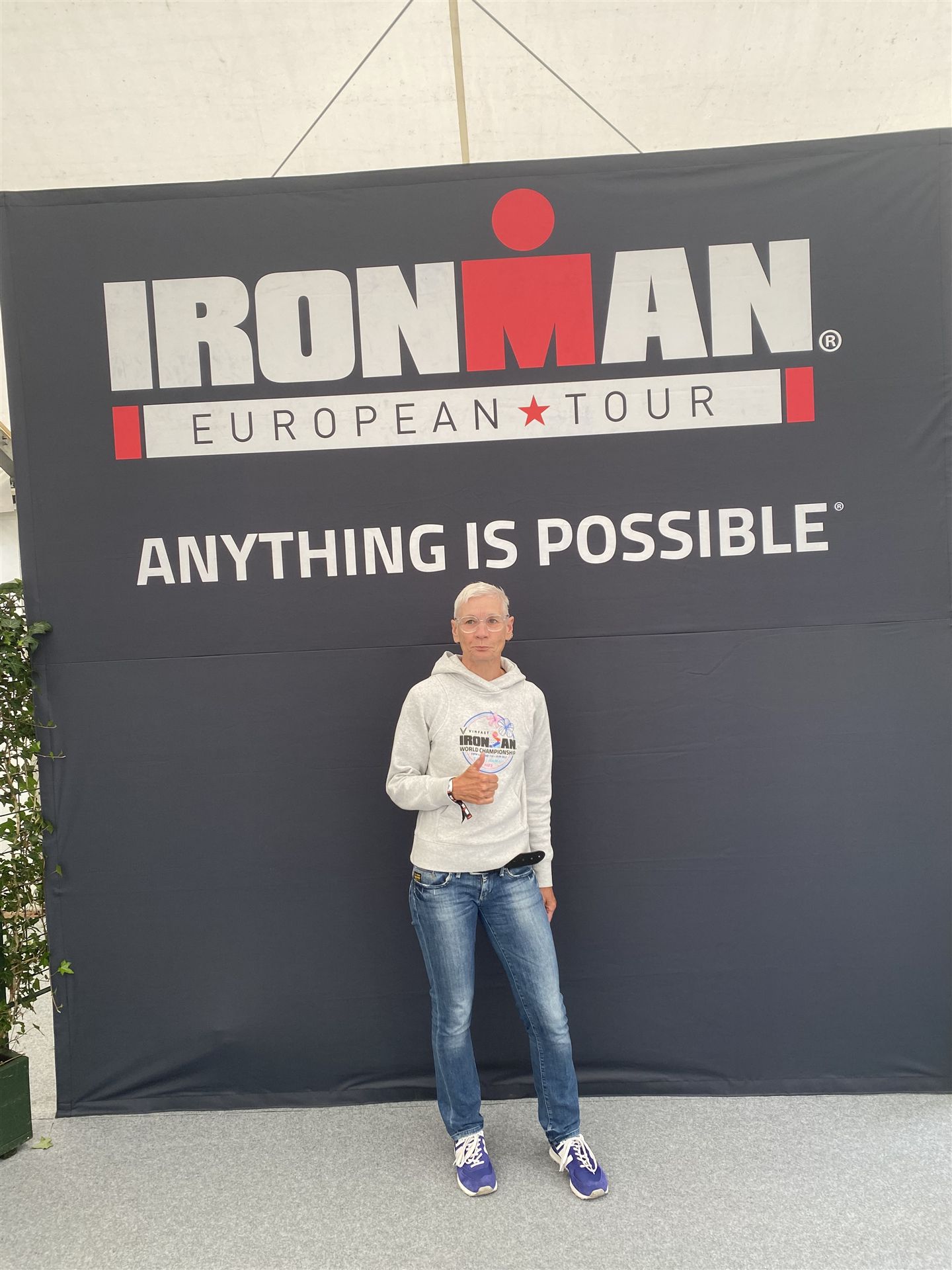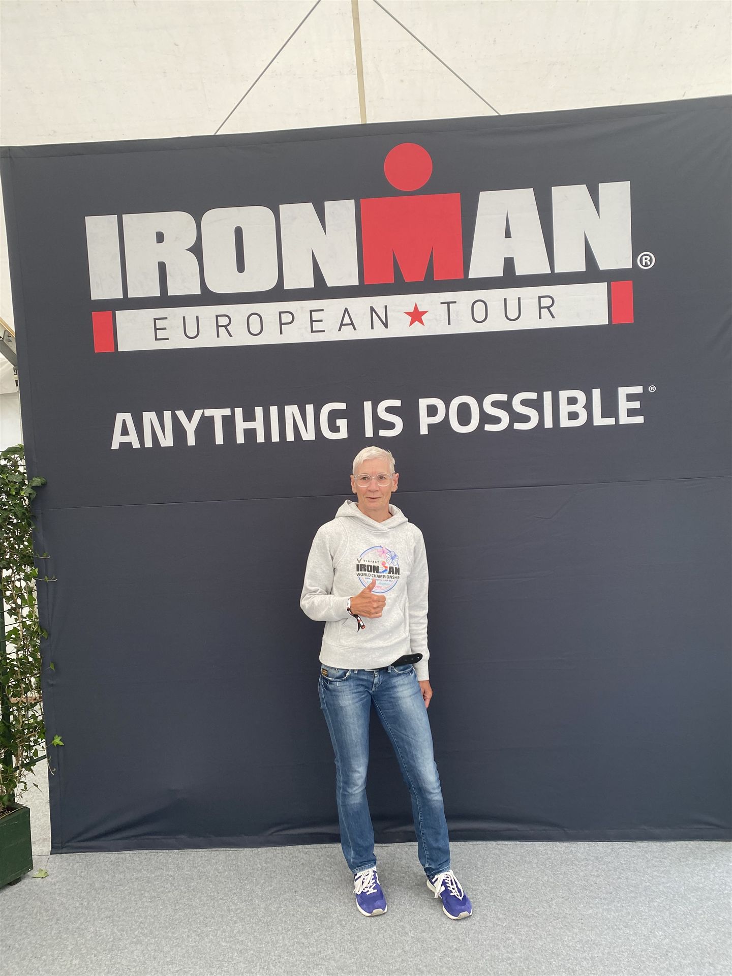 Ab in die Wechselzone und die Radschuhe mit den Laufschuhen tauschen. Aufgrund der Temperatur entscheide ich mich, mein Trikot anzulassen. Ich gehe als erste Frau in meiner AK mit einem Vorsprung von circa 18 Minuten auf die Laufstrecke. Nach dem ersten Kilometer geht es mir nicht so gut, ich fühle mich schlapp. Das kenne ich überhaupt nicht von mir. Anscheinend habe ich auf dem Rad nicht ausreichend gegessen. Normalerweise kann ich nach dem Rad direkt ohne Probleme los laufen, dieses Mal habe ich Probleme. Ich entscheide mich bis zur ersten Verpflegungsstelle Gehpausen einzulegen. An der ersten Verpflegungsstelle bin ich vorbei gelaufen, keine Ahnung weshalb. Das ist Wettkampf, da passieren solche Dingen. Bei der 2. Verpflegungsstelle nehme ich mir etwas Zeit und esse und trinke ordentlich. Danach geht es mir viel besser. Nach den ersten 10 Kilometern konnte ich meinen Vorsprung auf die Zweite bereits etwas ausbauen. Ich halte bei jeder Verpflegungsstelle an und nehme Flüssigkeit bzw. Gel zu mir. Der Vorsprung wird immer größer. Werner hält mich auf dem Laufenden. Ab circa Kilometer 32 habe ich Probleme mit der Verpflegung. Ich kann nichts mehr aufnehmen, mein Magen rebelliert. Ich entscheide spontan, dass ich es mit Cola probiere. Die Strategie geht auf, mein Magen rebelliert nicht mehr. Da ich bereits einen Vorsprung von über 45 Minuten auf den letzten 10 Kilometern habe gehe ich auf Nummer sicher. Ich nehme nur noch Cola zu mir und lege die ein- oder andere Gehpause ein. Ich bin zuversichtlich als Erste ins Ziel zu kommen. Bei Kilometer 39 bin ich schon leicht euphorisch, laufe jedoch weiter verhalten. Kein unnötiges Risiko eingehen. Bei Kilometer 41 fange ich an innerlich zu jubeln. Auf dem letzten Kilometer sind alle Probleme vergessen, es geht in Richtung Ziel. Der Zieleinlauf ist für jeden Athleten etwas Besonderes. Direkt im Ziel wartet bereits Werner auf mich und überreicht mir die Finisher Medaille. Das ist ein toller Moment. Natürlich habe ich, wie immer, vergessen auf meine Endzeit zu schauen. Wichtig für mich ist, ins Ziel zu kommen. Natürlich freut man sich, wenn dann noch eine gute Zeit bzw. Platzierung raus komm. Den Marathon bin ich in einer Zeit von 4:13:33 gelaufen. Meine Gesamtzeit beträgt 11:51:30 Stunden. Wahnsinn, ich bin total begeistert mit dieser Zeit gefinisht zu haben. Die Zweite in meiner AK kommt erst 1:17 Stunden nach mir ins Ziel. Es ist toll wieviel Zeit ich noch rauslaufen konnte. Es war wieder ein tolles Erlebnis in Klagenfurt und ich bin dankbar bei diesem Jubiläum dabei sein zu können. Nach dem Wettkampf gibt es noch eine Woche Urlaub und Erholung, danach geht der Focus auf die Weltmeisterschaft in Nizza.