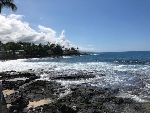Langsam gewöhnt man sich an das Klima auf Hawaii. Obligatorischer Kaffee mit Blick auf das Meer. Der Blick aus unserem Schlafzimmer geht direkt auf den Alii Drive. Hier absolvieren bereits einige Athleten ihr Lauf- bzw. Radtraining.