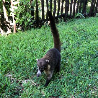 Die Nasenbären tummeln sich auch ab und an am Pool, es könnte ja etwas zum Essen geben.