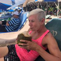 Danach haben wir es uns etwas am Hängematten-Beach gemütlich gemacht. Es gab frische Kokosnussmilch, ist nicht mein Fall. Zum Schluss waren wir noch am Leuchtturm. Da gab es dass weltbeste gecrashte Eis mit Kaffee. Als Abschluss waren wir noch am Strand, da drücken hohe Wellen das Wasser mit einem lauten Zischen aus dem Boden. Am späten Nachmittag waren wir noch in der Stadt, die Startunterlagen abholen.