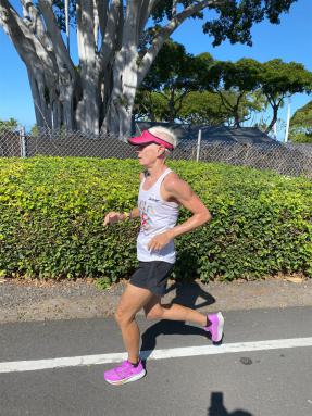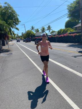 Auf der Laufstrecke werden die bereits gelaufenen Meilen bzw. Kilometer angezeigt. Gefühlt komme ich kaum weiter, es nimmt kein Ende. Ich beschäftige mich mit der Anzahl der Kreuzungen, die ich noch Laufen muss, irgendwie muss man sich ja ablenken. Dann endlich kommt der letzte Anstieg auf dem Highway und dann biege ich in die Palani Road ab. Jetzt nur noch runter laufen, es sind noch circa 2 Meilen.